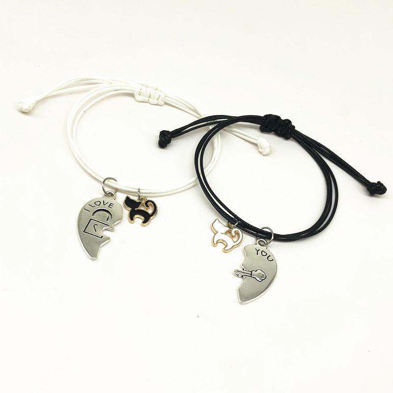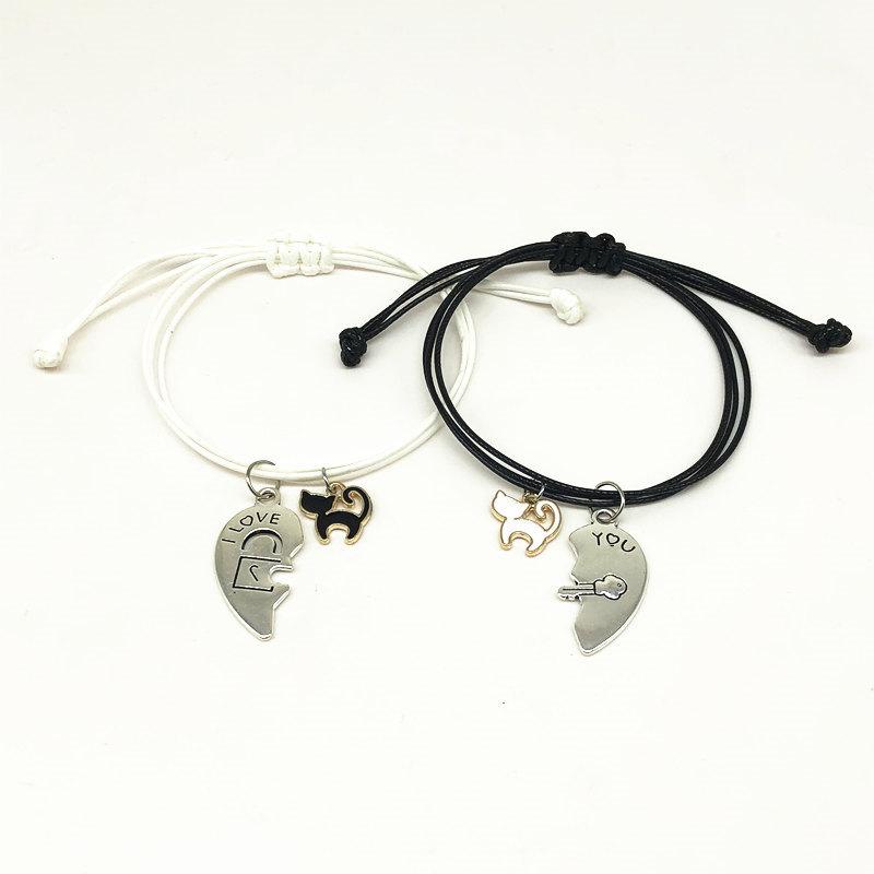 [Paquete de 2] Pulsera de Pareja de Gatitos Personalizada para Hombres y Mujeres, Colgante de Amor Entrelazado, Cuerda de Mano Retro, Pulsera para el Día de San Valentín