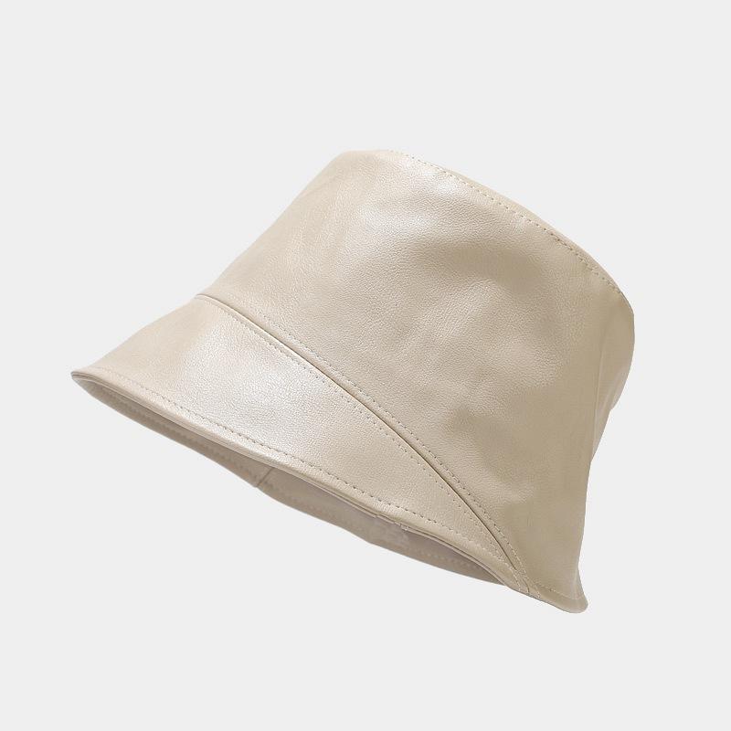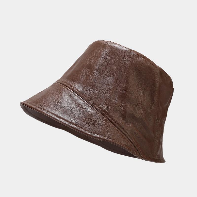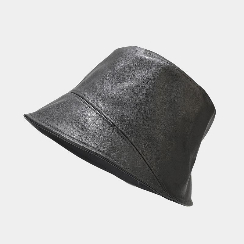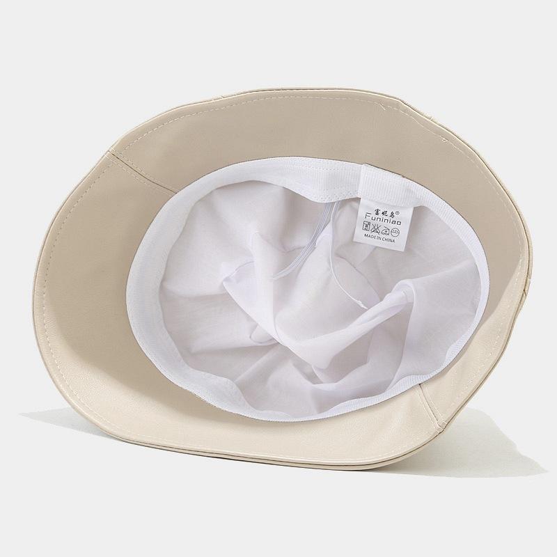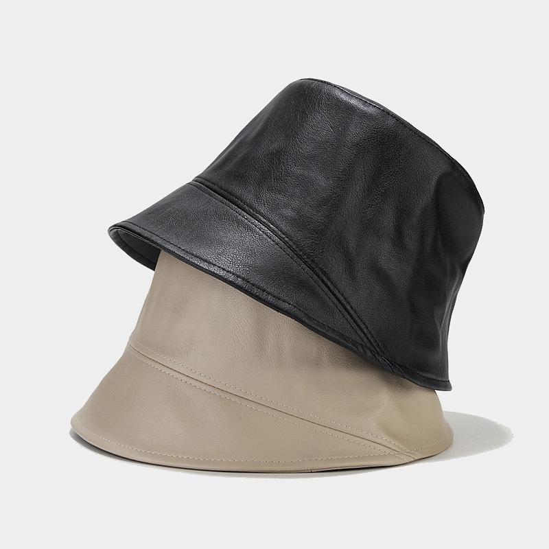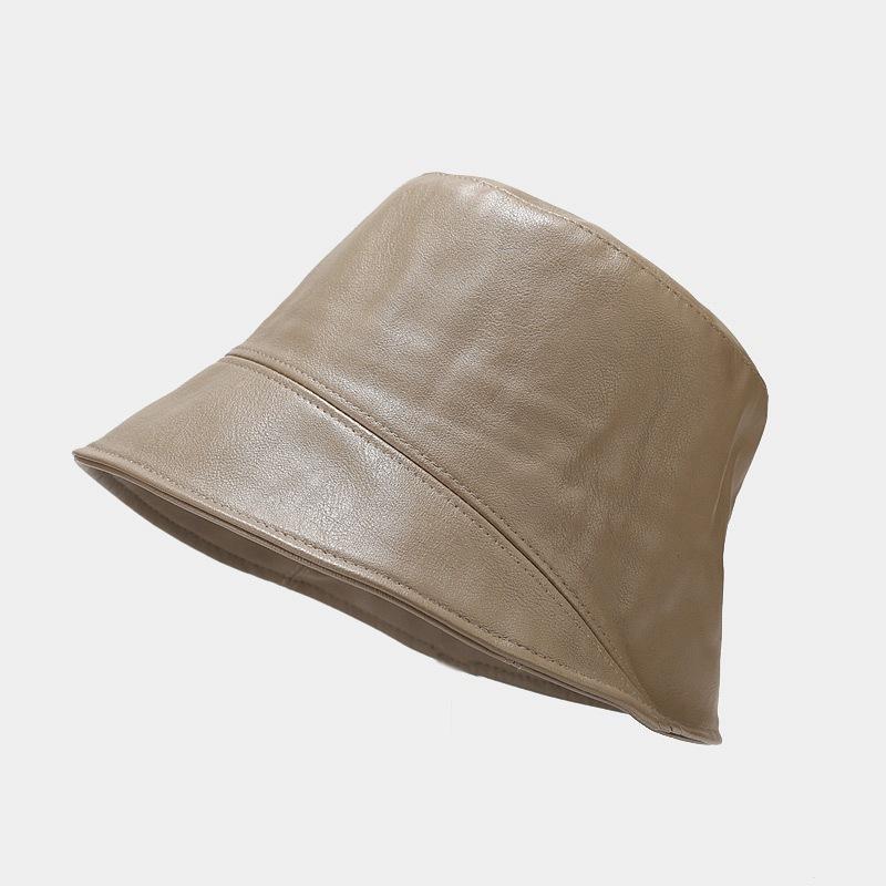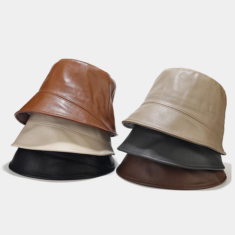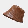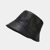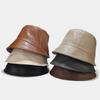 Diseño Nicho Japonés Cubierta Facial Lisa Sombrero de Pescador para Mujer Otoño e Invierno Combinable Sombrero Bucket de Cuero PU Moda Parasol Sombrero Cubeta