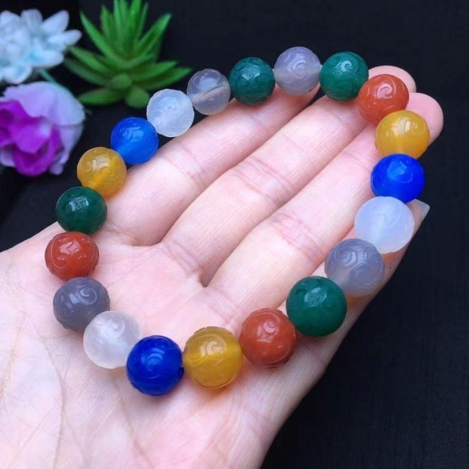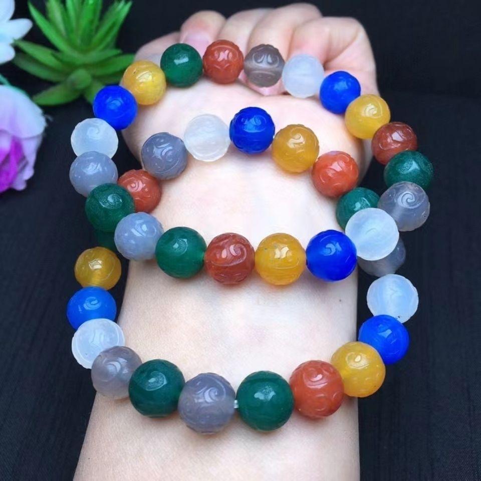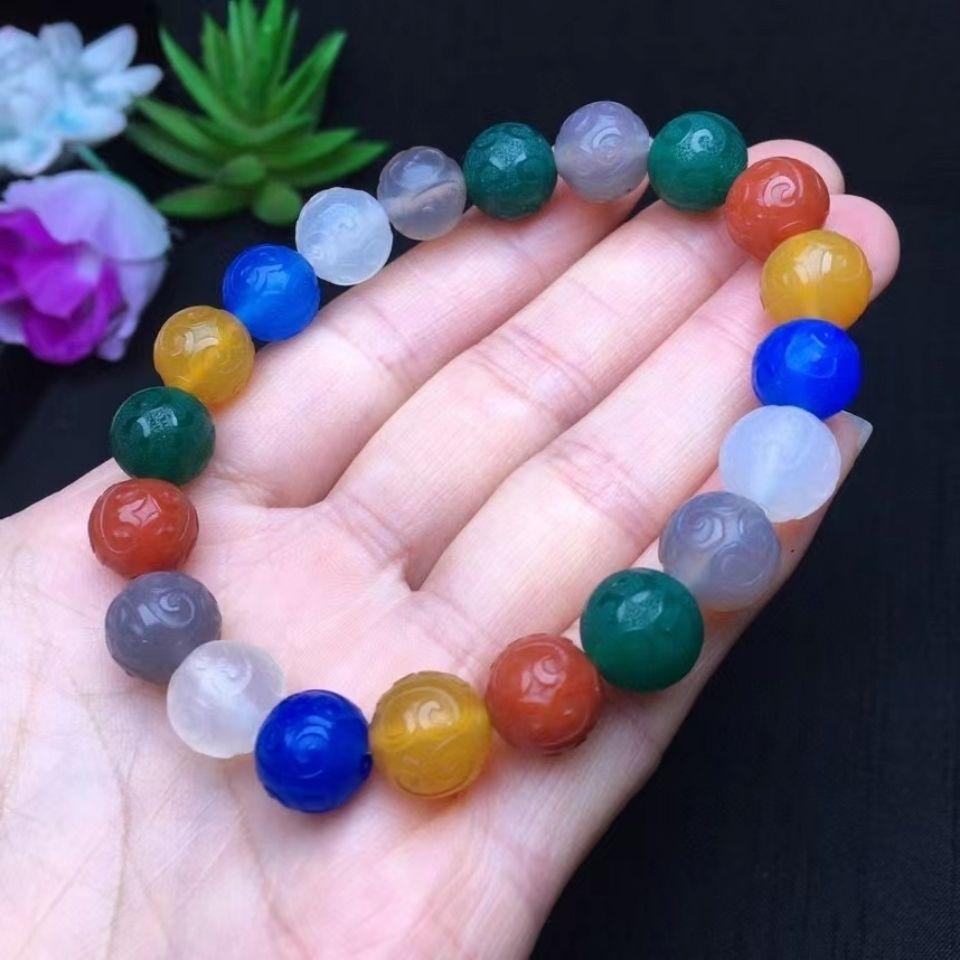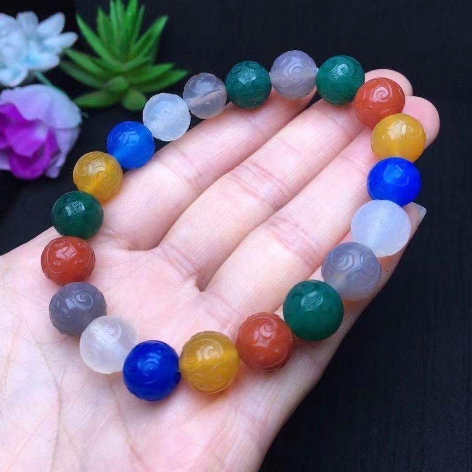 Pulsera de calcedonia redonda fina de 6 mm de hielo, pulsera Three Lives Three Worlds Dingdang, pulsera de ágata multicolor, pulsera de belleza, pulsera de jade con transmisión en vivo
