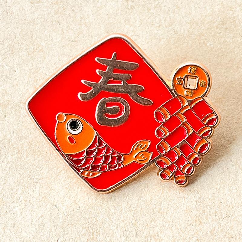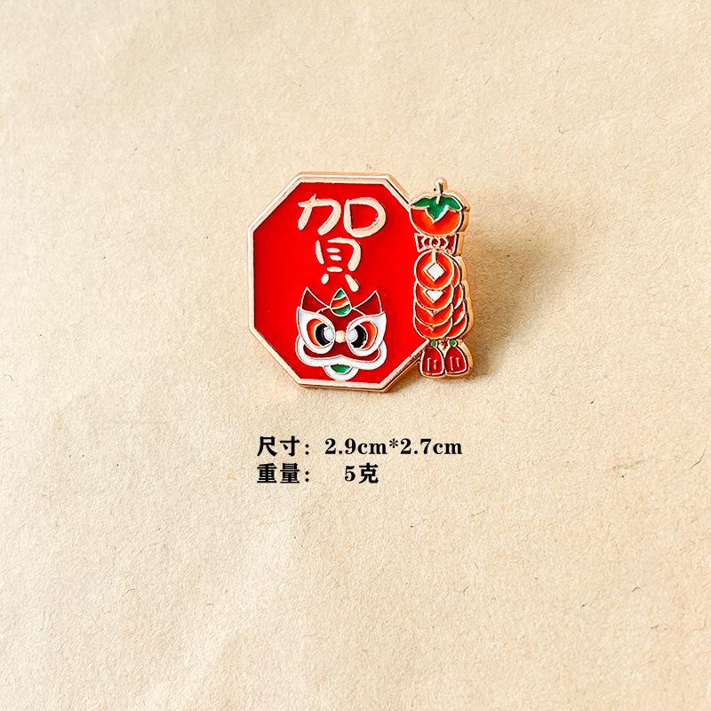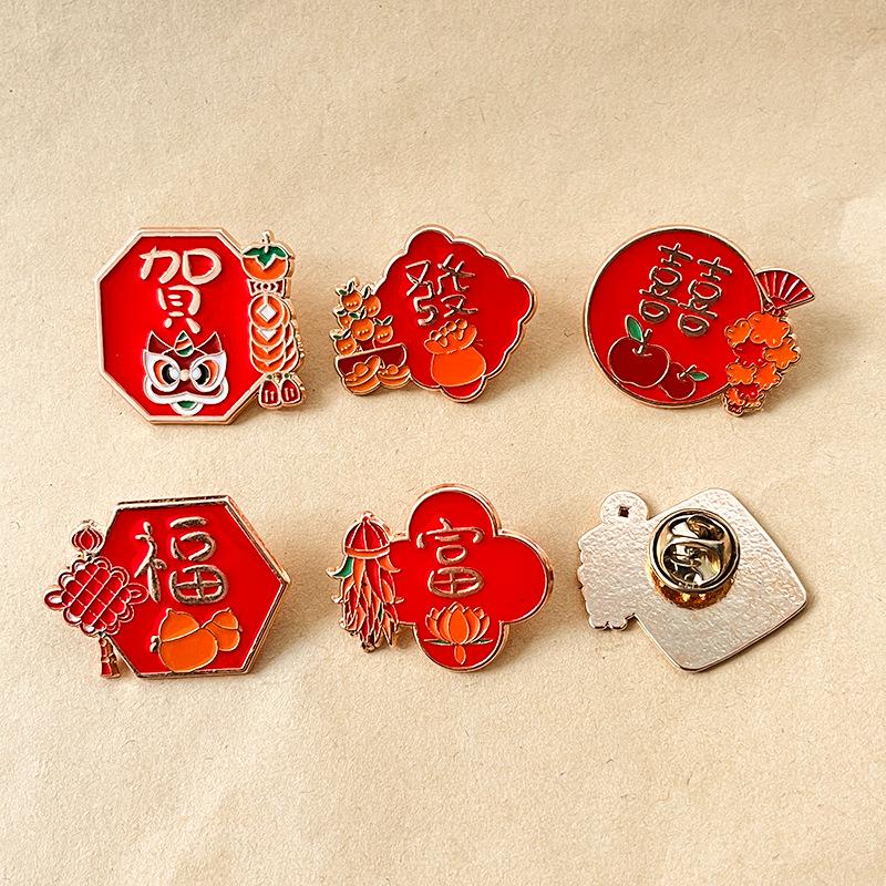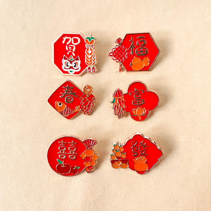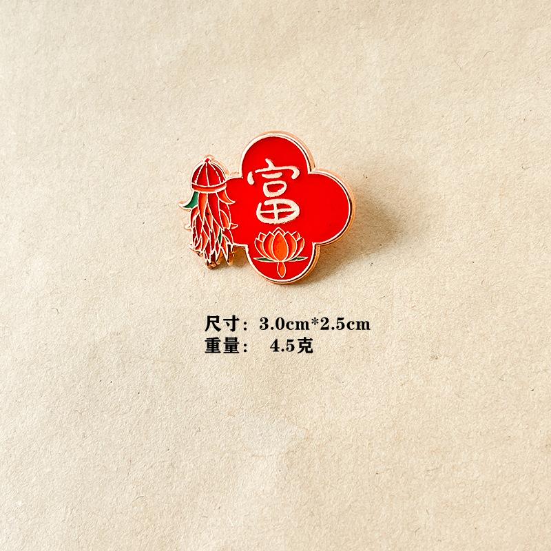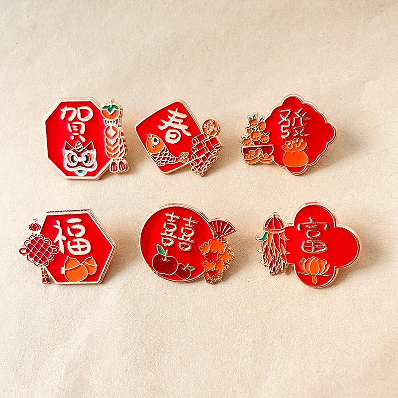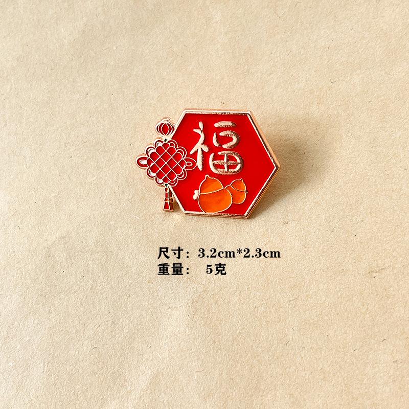 Broche de Año Nuevo, Festival de Primavera, rojo festivo, estilo chino, insignia, accesorios de metal, hebilla de año de dragón rico, joyería femenina