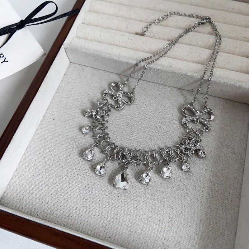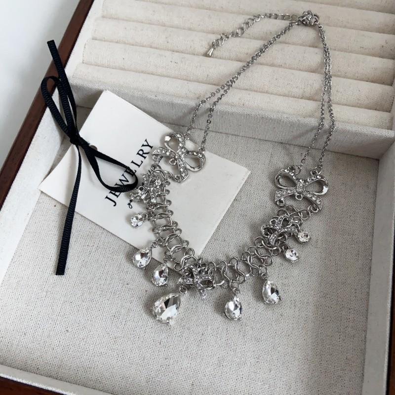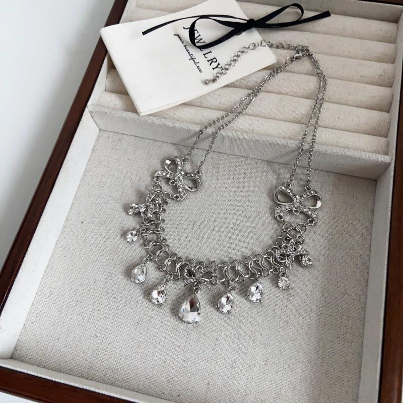 Collar de alta calidad con diseño de nicho de nueva moda para mujer, con cadena de clavícula y lazo con borlas de diamantes de imitación en forma de gota de estilo europeo y americano