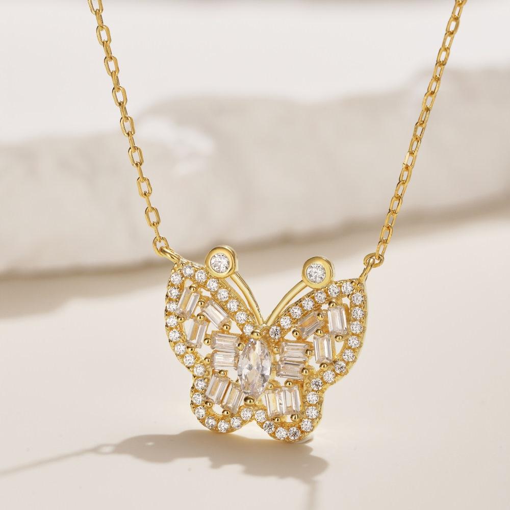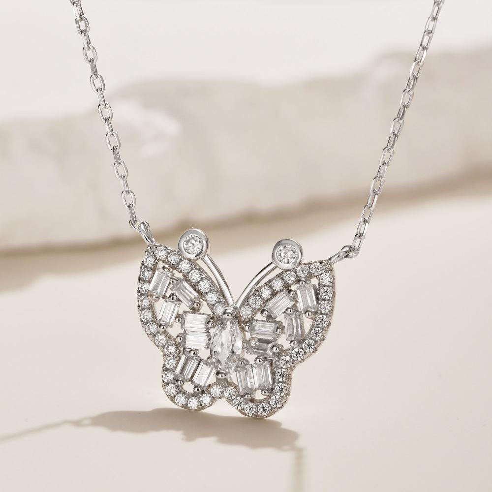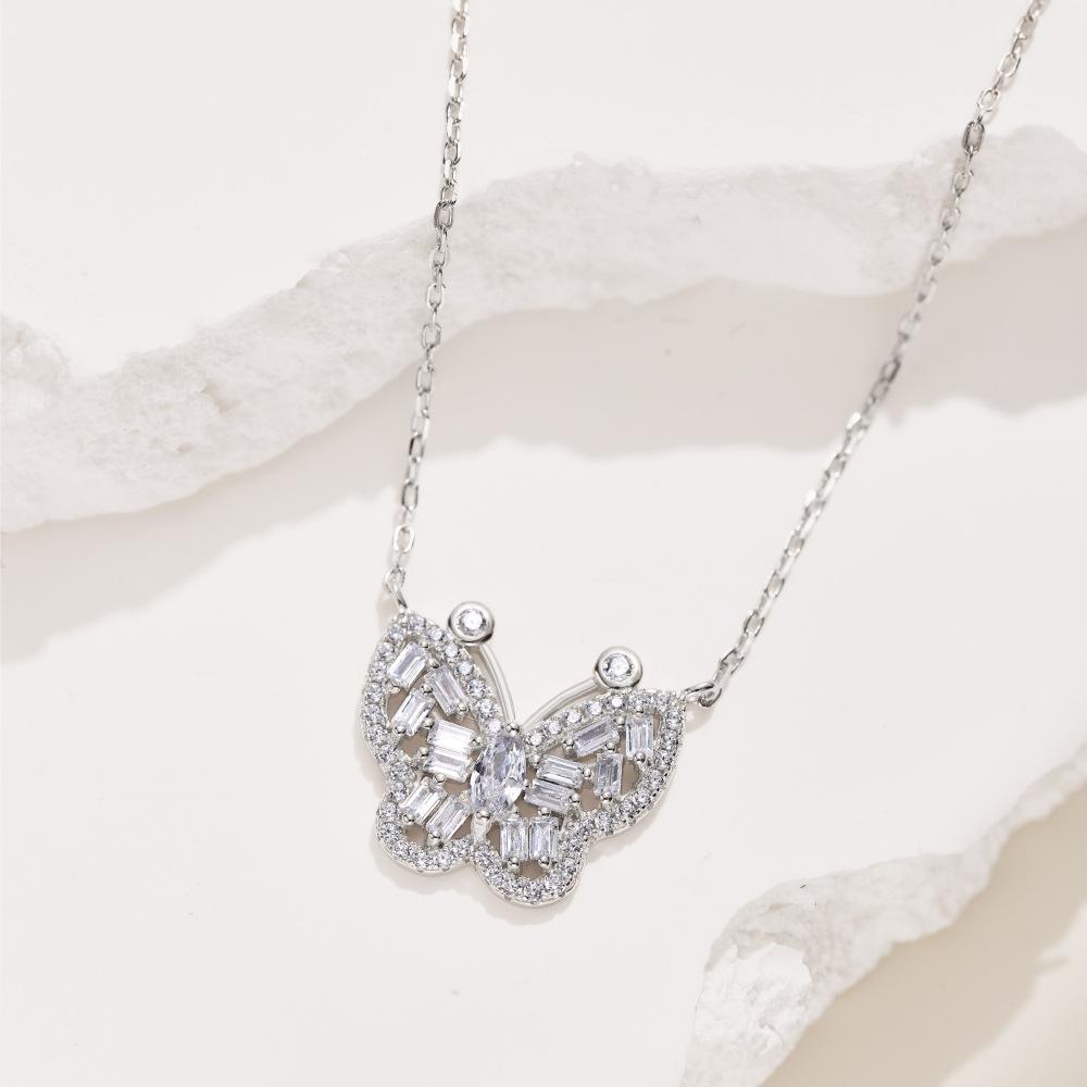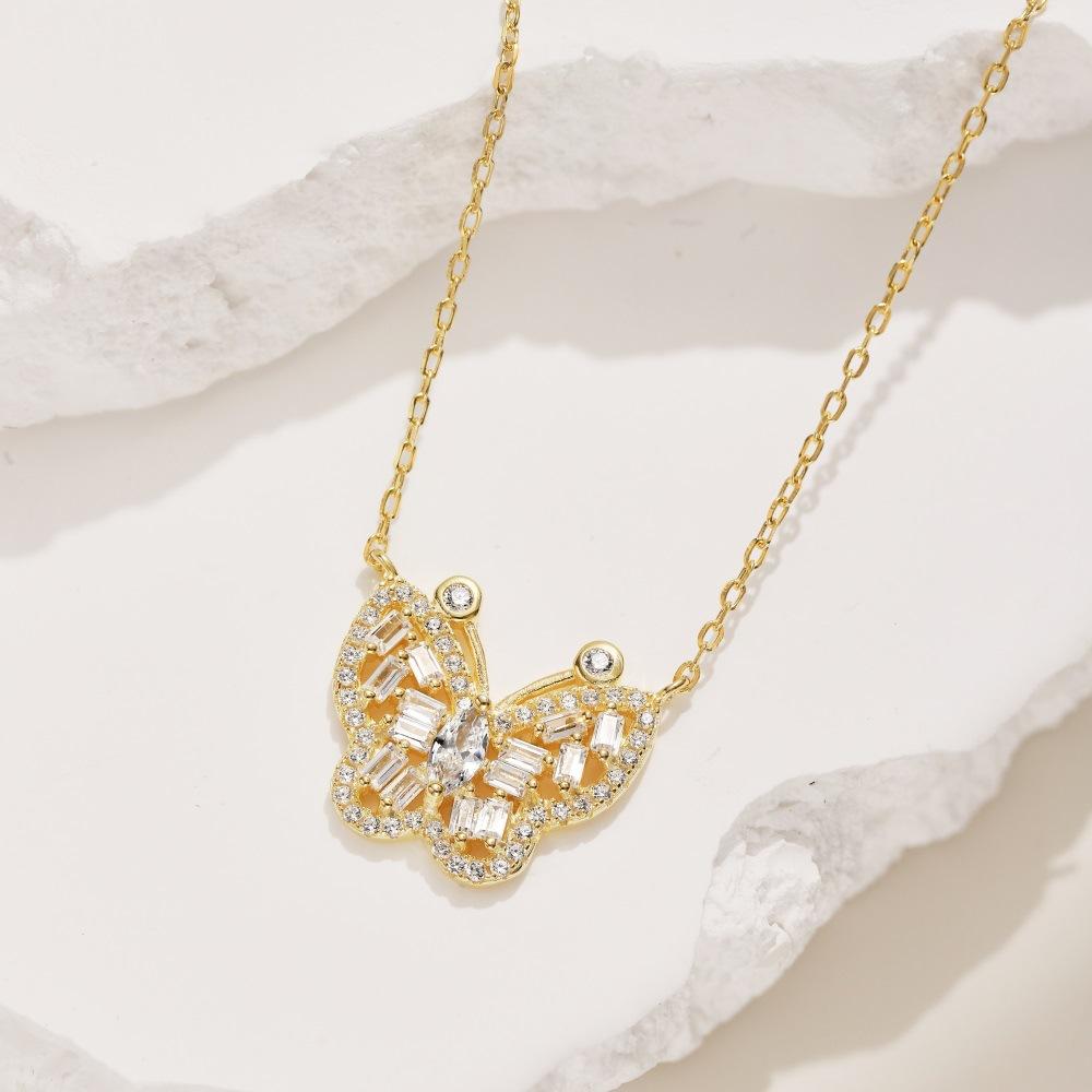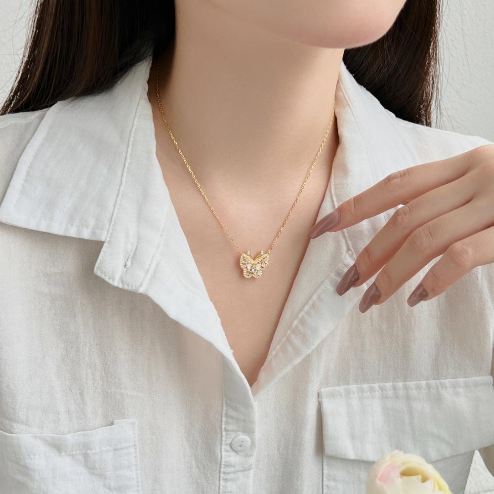 Artículo de lujo ligero japonés y coreano nuevo S925 de plata esterlina con forma de mariposa para mujer con incrustaciones de circonitas, diseño de personalidad simple para mujer, venta al por mayor