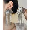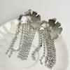 Pendientes largos de lujo ligeros y de alta gama con borlas y cadena de diamantes con pétalos y personalidad exagerada de diseño de nicho europeo y americano para mujer.