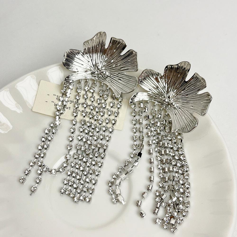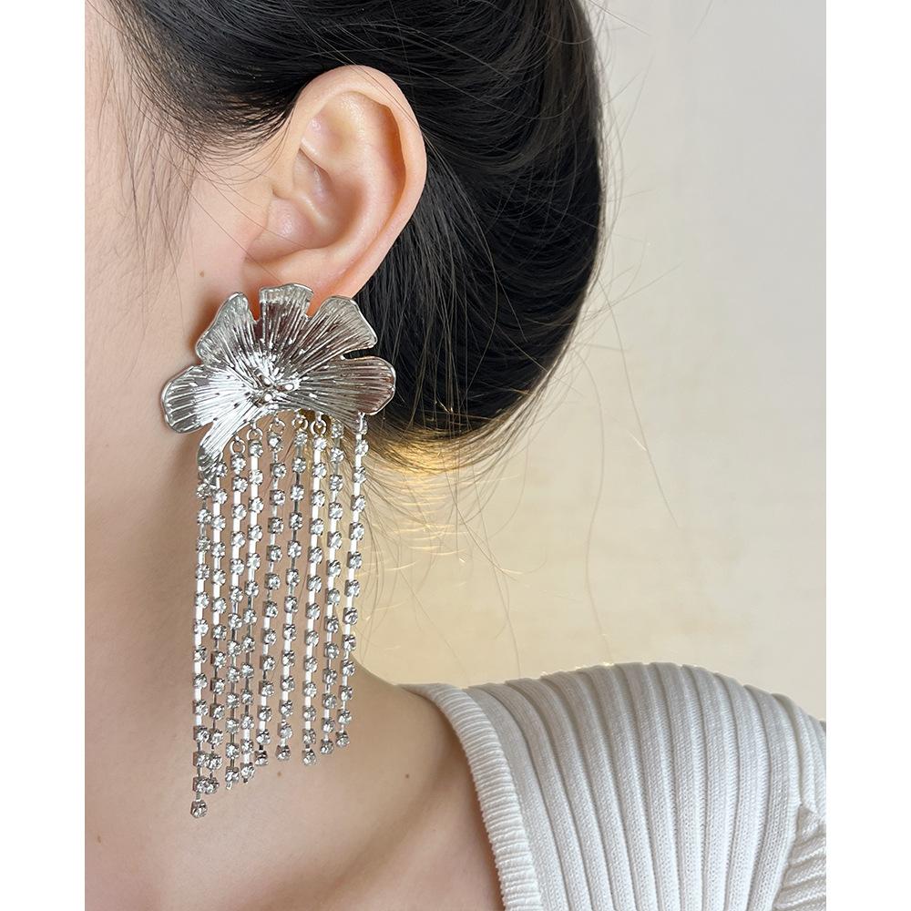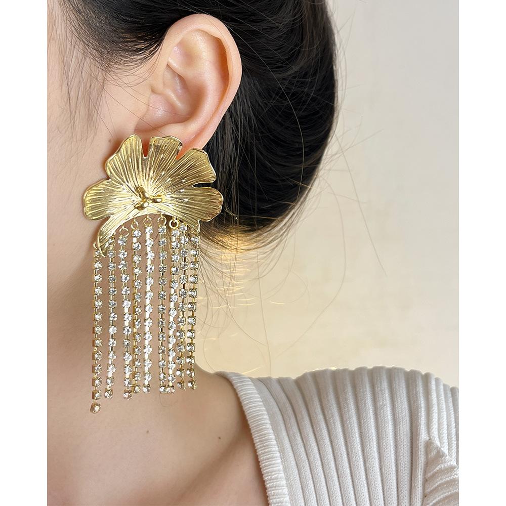 Compra Pendientes largos de lujo ligeros y de alta gama con borlas y cadena de diamantes con pétalos y personalidad exagerada de diseño de nicho europeo y americano para mujer. al por mayor en Joom.pro