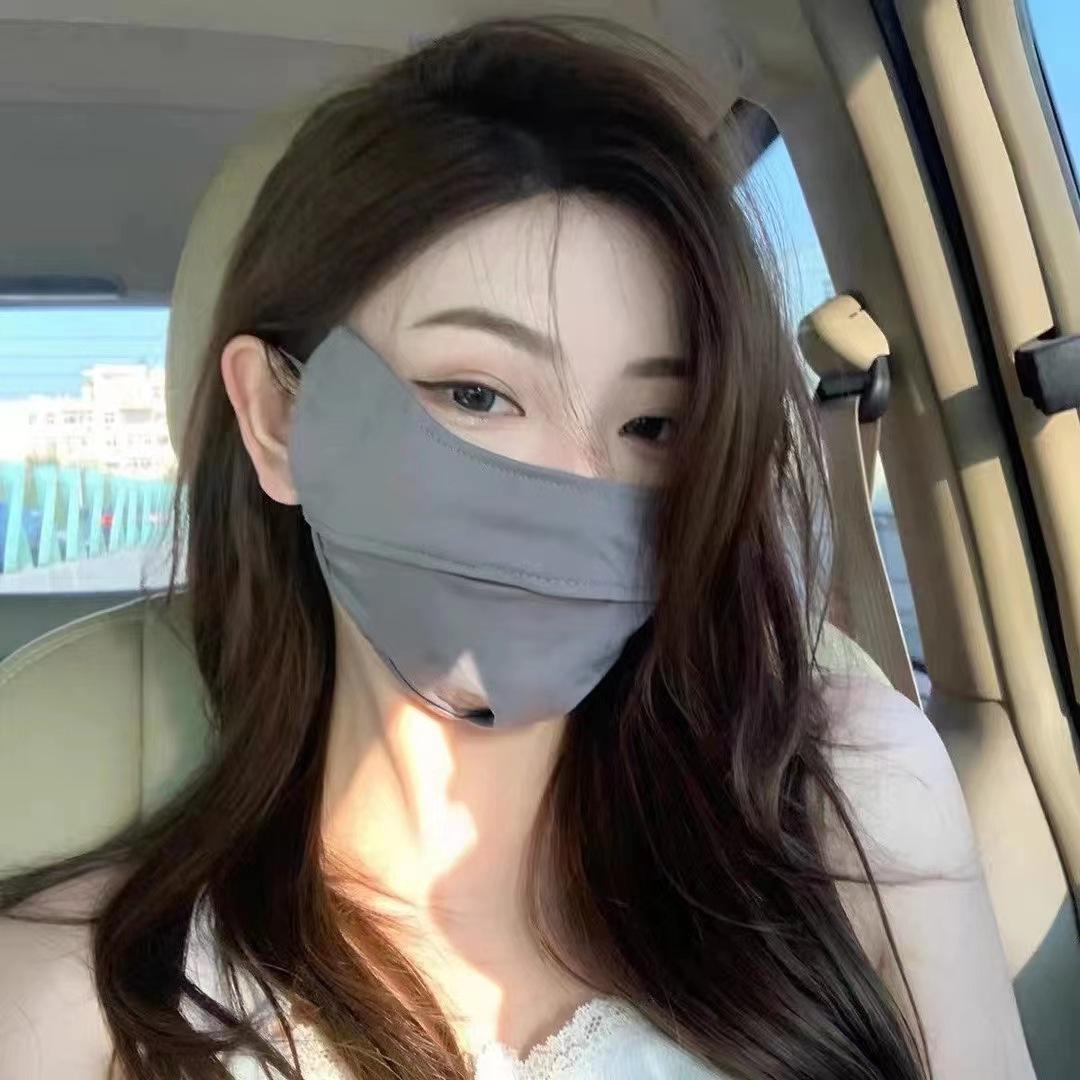 Mascarilla de protección solar de seda de hielo, color sólido, fina, transpirable, para verano, para mujer, con protección UV para el contorno de ojos.