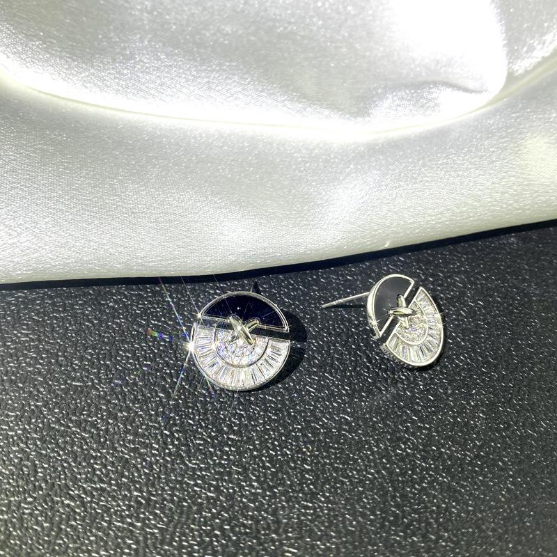 Pendientes de gota de circonita con costuras de letras huecas japonesas y coreanas, pequeños pendientes redondos de marca de moda, pendientes Joker diarios al por mayor