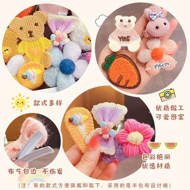 Accesorios para el cabello de peluche para niños, lindos accesorios para el cabello de bebé para otoño e invierno, horquillas de dibujos animados para niñas, conjunto de horquillas de celebridades de Internet