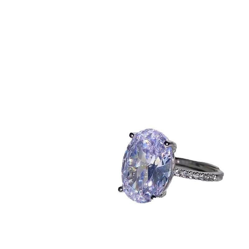 Anillo de Compromiso Ovalado de Moda de Lujo Ligero de Venta Caliente Europeo y Americano para Mujer, Anillo de Zirconia de Alta Gama Púrpura Claro
