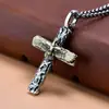 Collar con colgante de serpiente y cruz verde retro europeo y americano para hombre, personalizado, creativo, con microincrustaciones de cobre y circonita, joyería de hip-hop