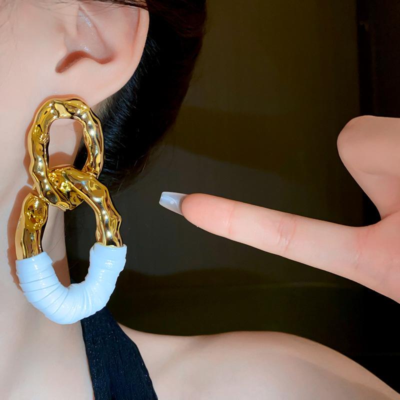 Pendientes geométricos de perlas retro francesas, pendientes de temperamento de moda exagerada, pendientes de lujo ligeros de nicho de alta gama, venta al por mayor para mujeres