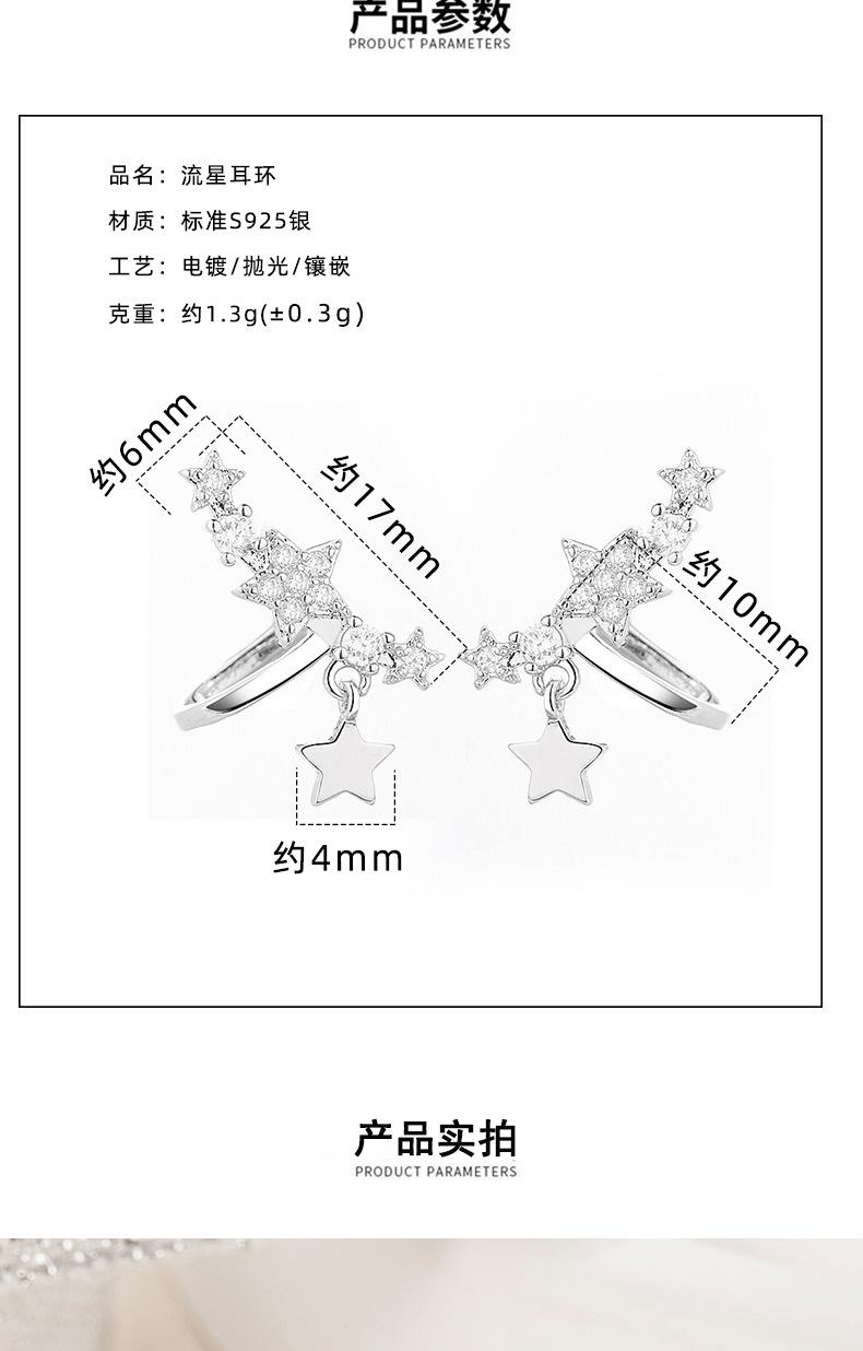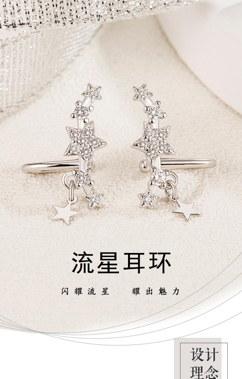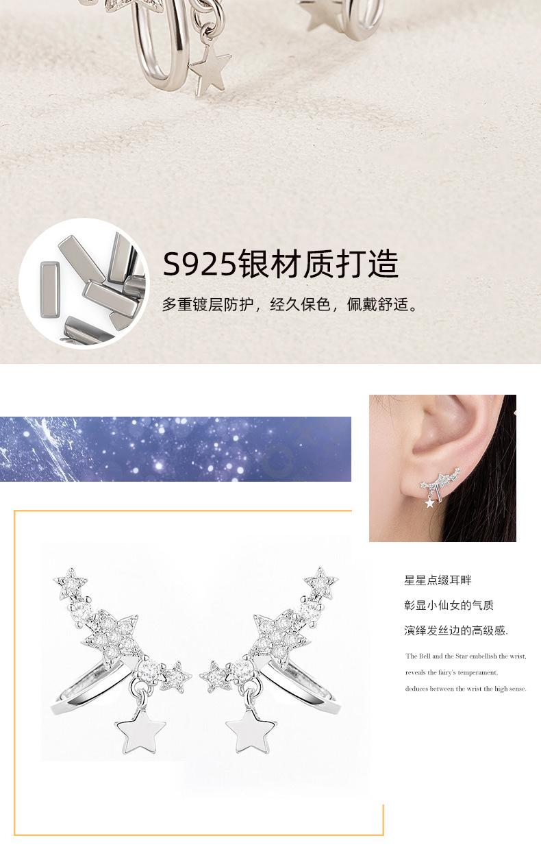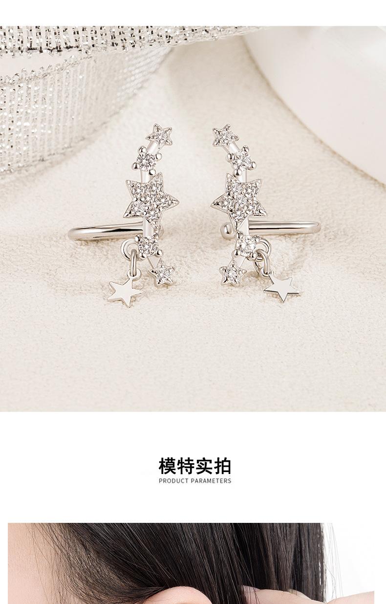 Compra Pendientes elegantes con clip de oreja de estrella de nicho S925 para mujer, de plata de ley de alta calidad con incrustaciones de diamantes, estilo simple y frío. al por mayor en Joom.pro