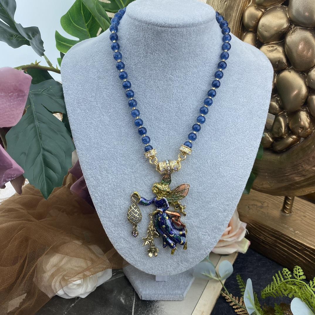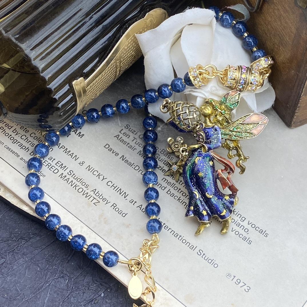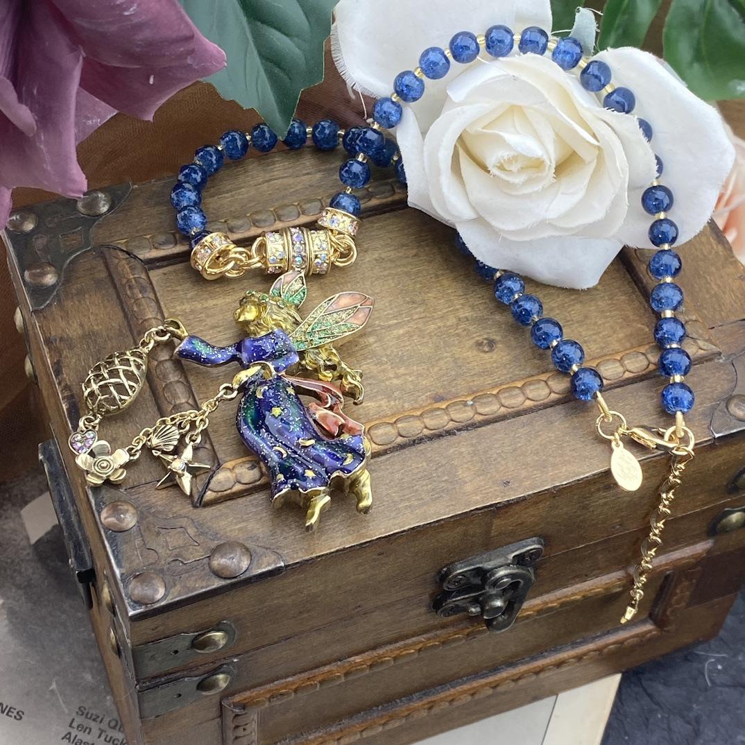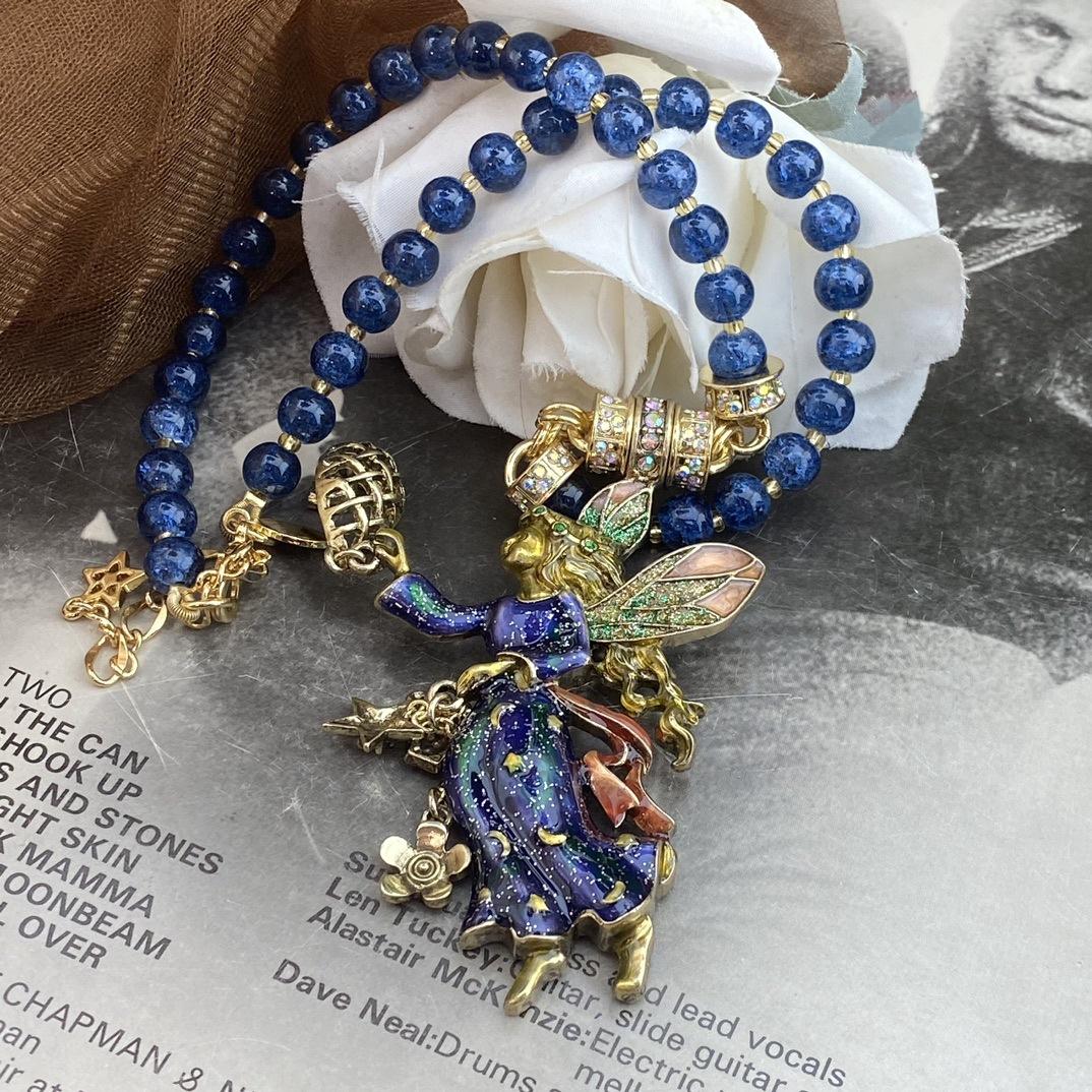 Colgante estilo hada mariposa azul oscuro con diamante checo artesanal de concha de plata y concha de oro vintage antiguo de Mi Nan