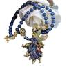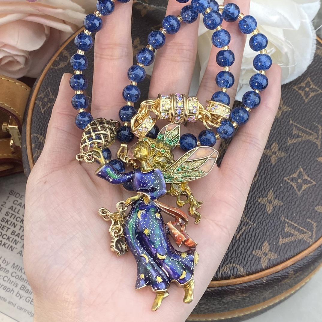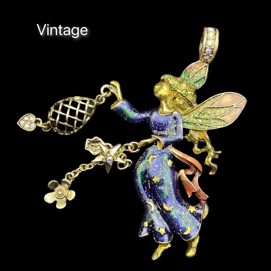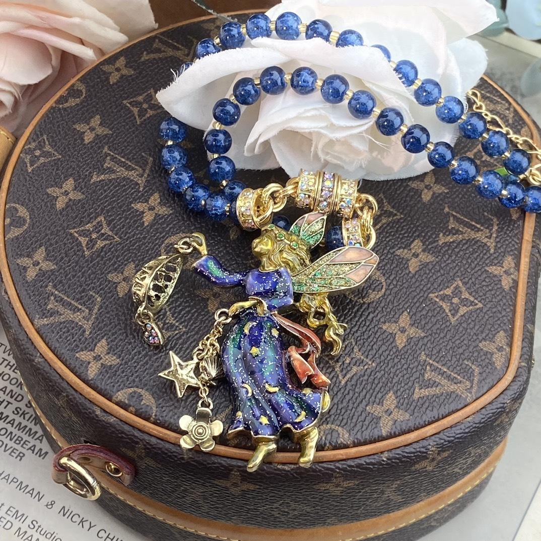 Colgante estilo hada mariposa azul oscuro con diamante checo artesanal de concha de plata y concha de oro vintage antiguo de Mi Nan