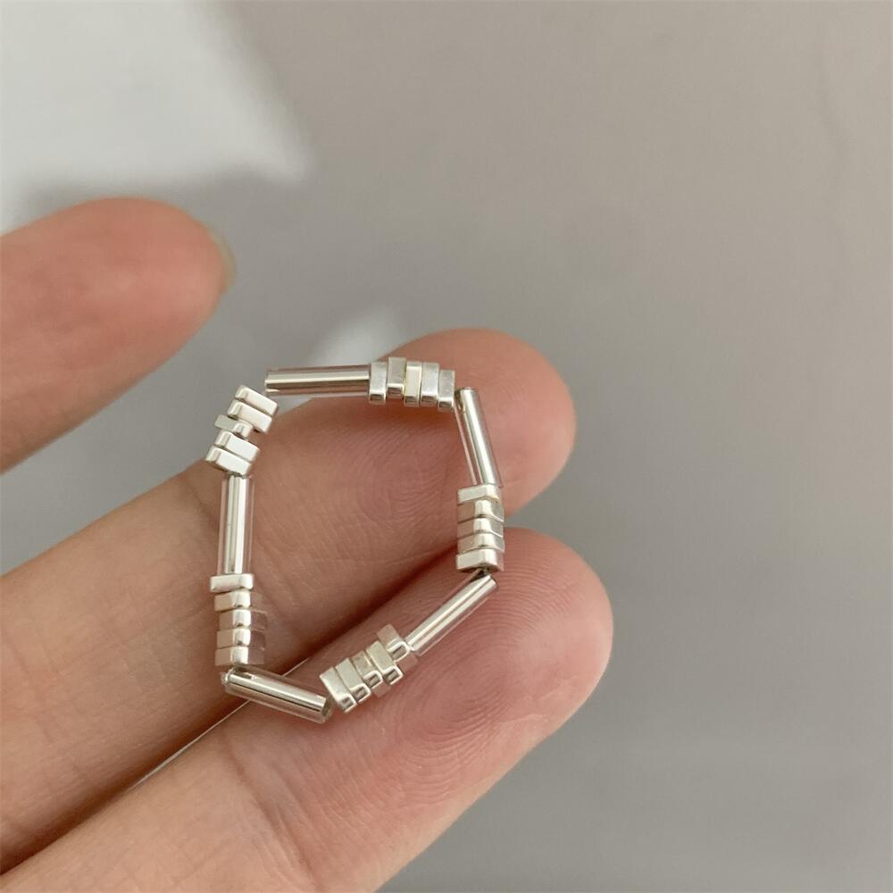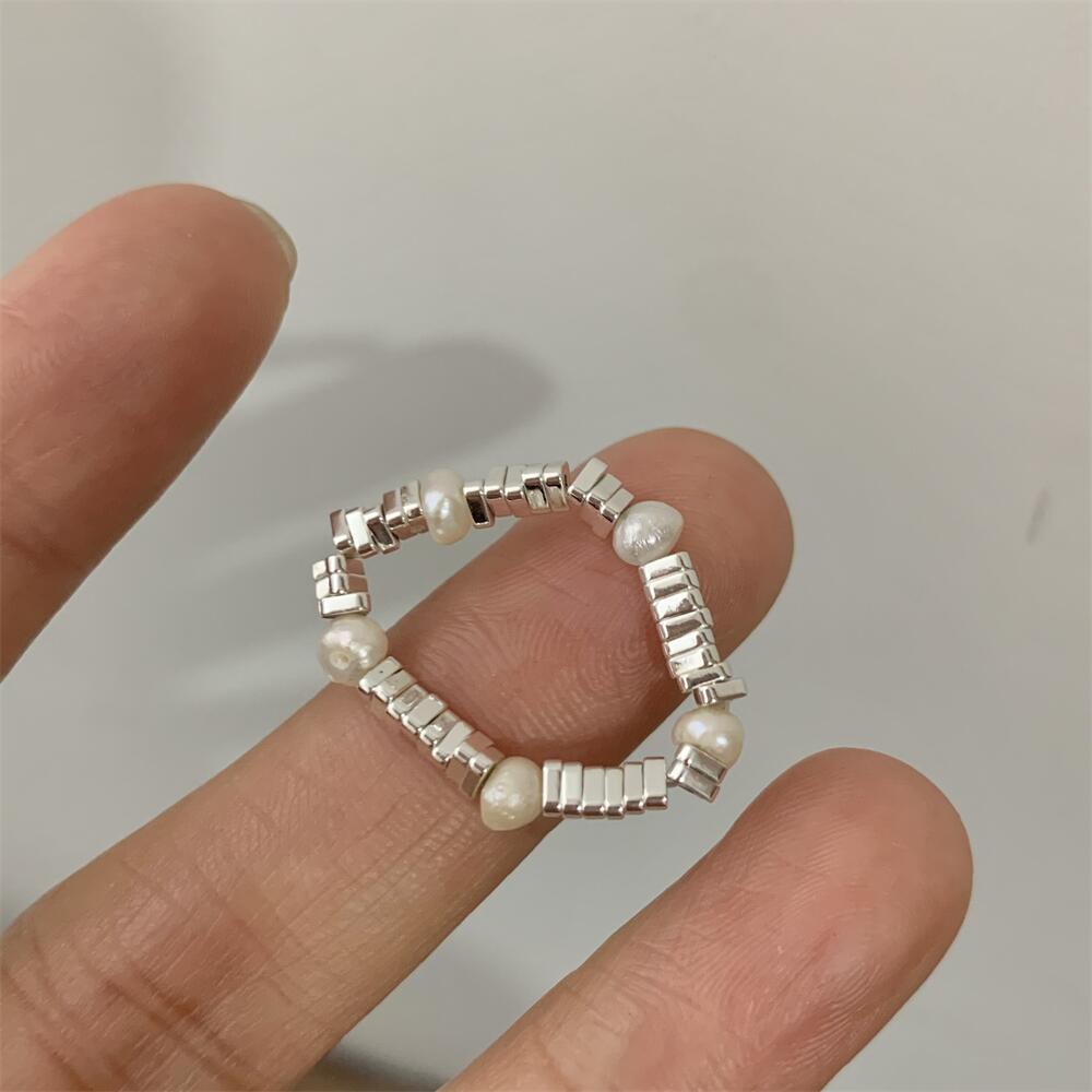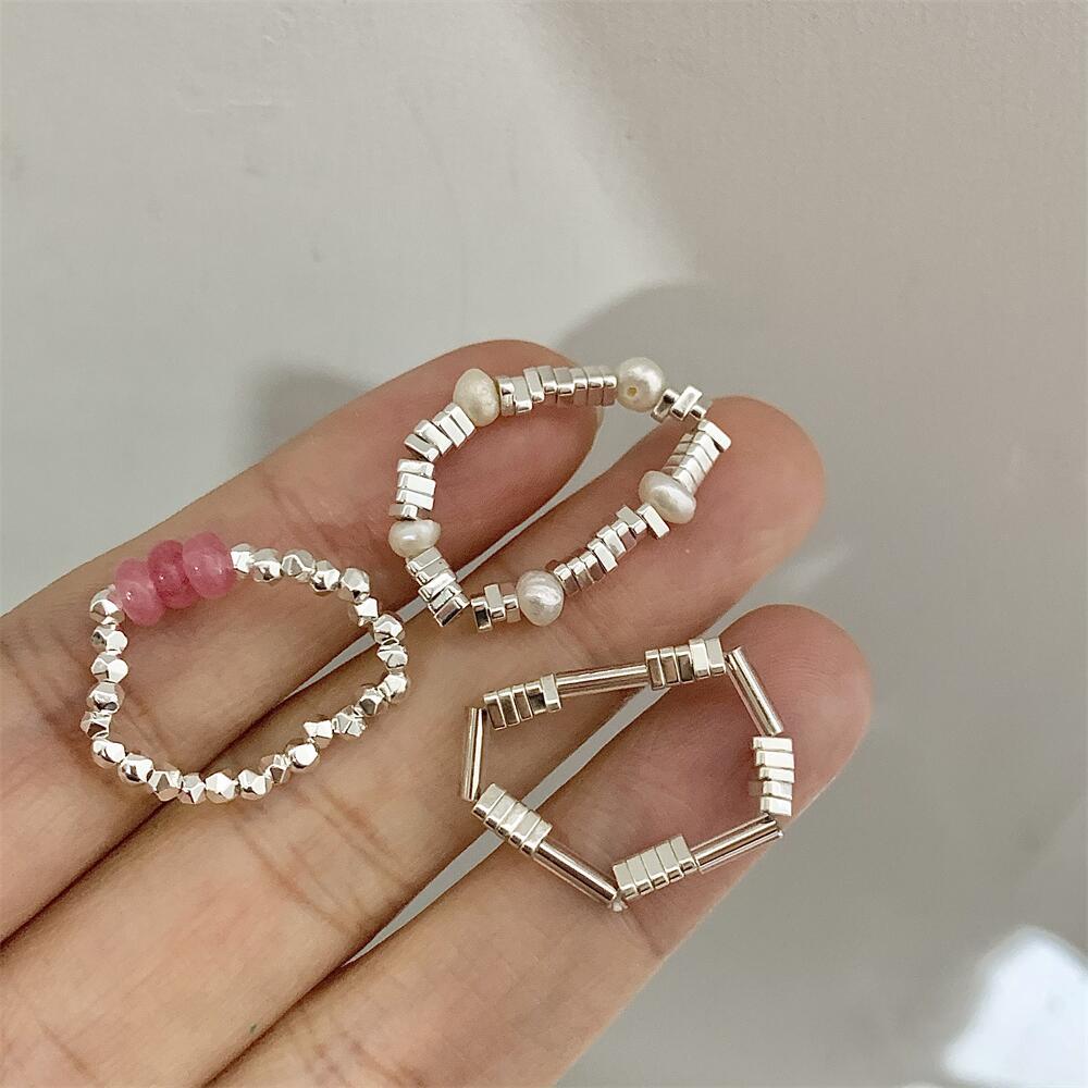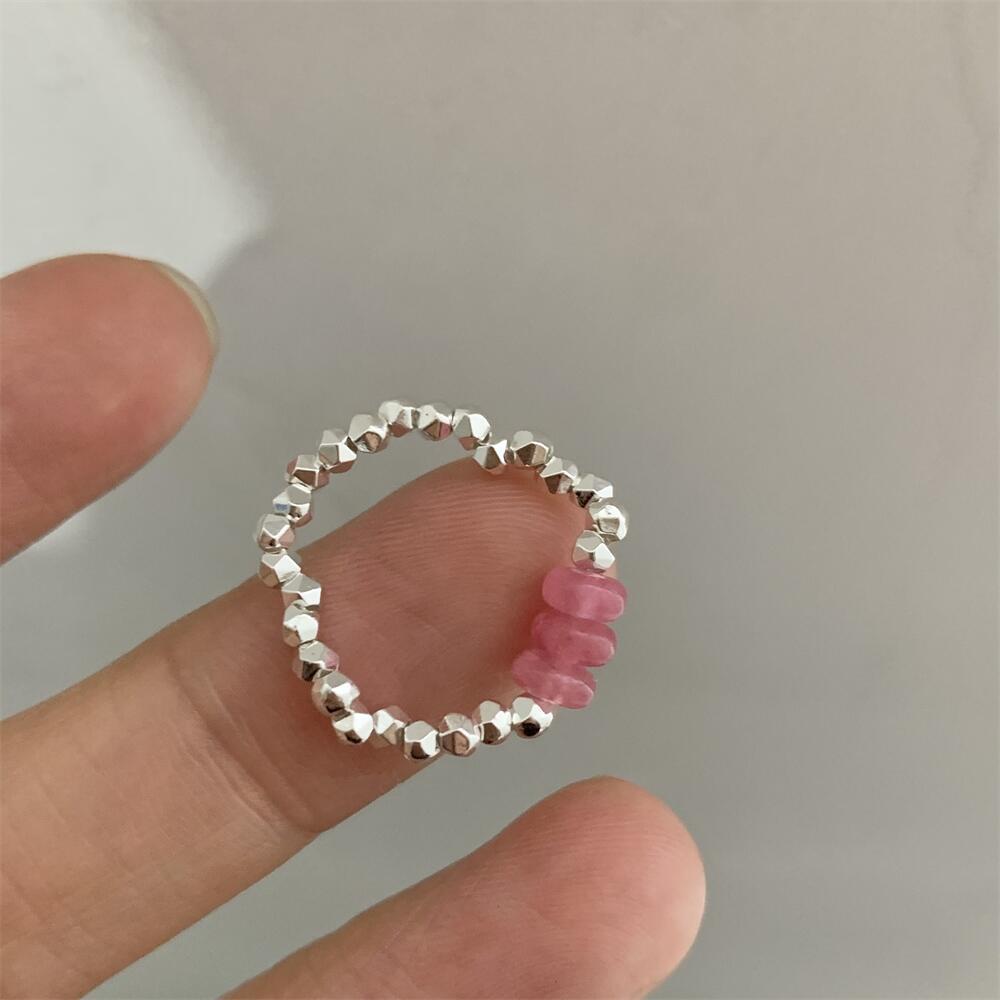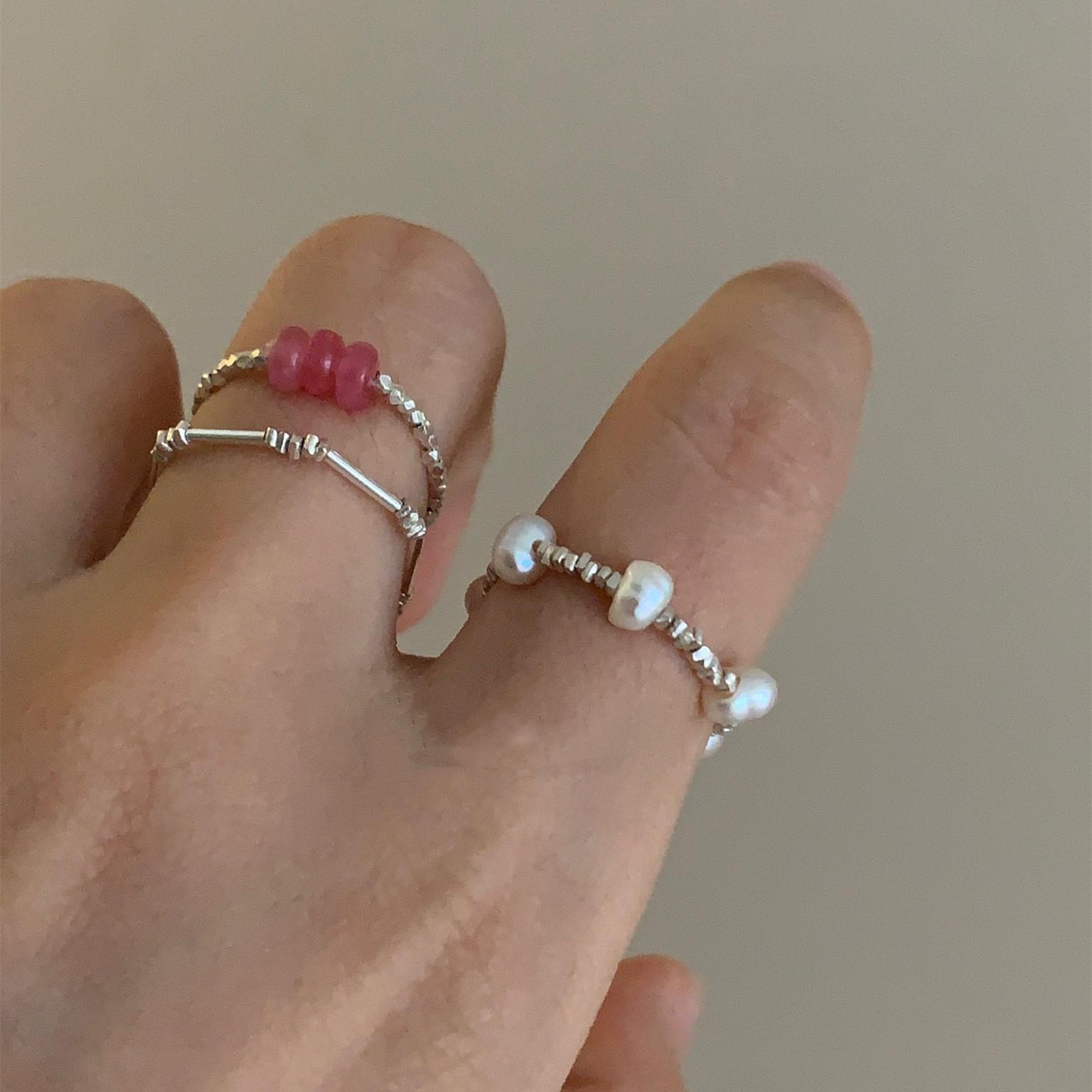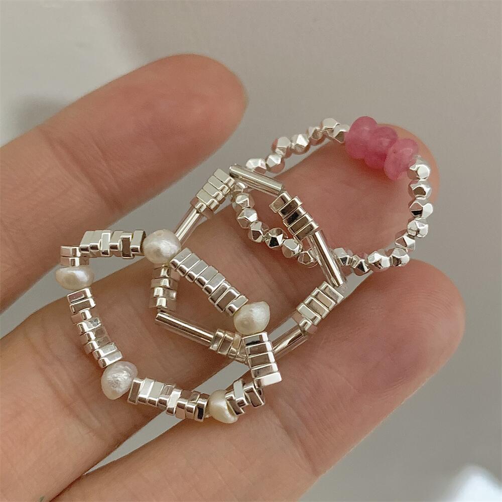Pink stone broken silver, Thin tube broken silver, Granular Pearl broken silver