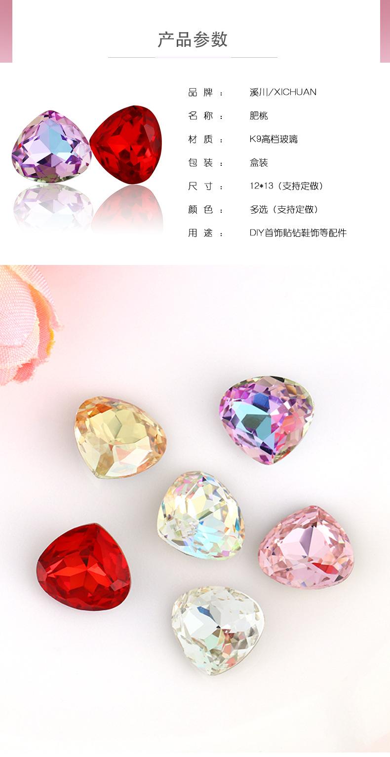 Diamante de Cristal Diamante K9 Diamante con Forma Especial Diamante Fondo Puntiagudo Corazón de Durazno Gordo Material de Accesorios para Ropa y Bolsos de Zapatos Diamante de Imitación Corazón de Durazno Gordo Fondo Alto