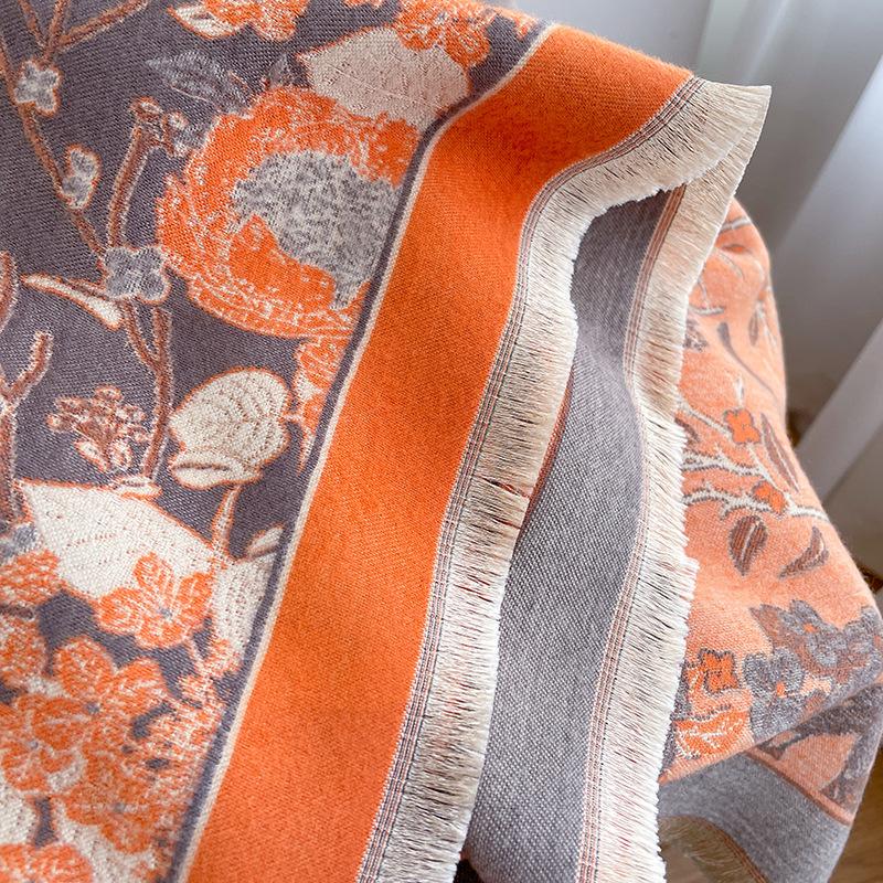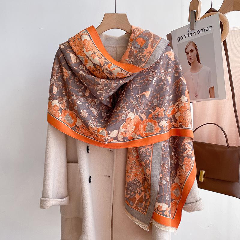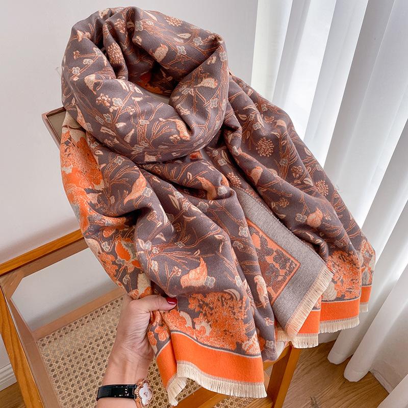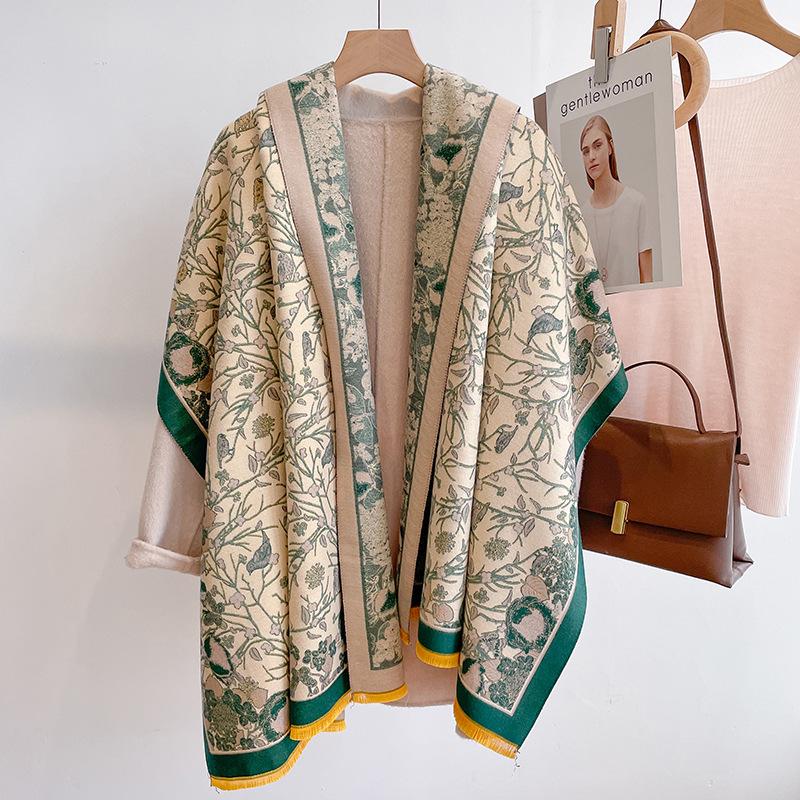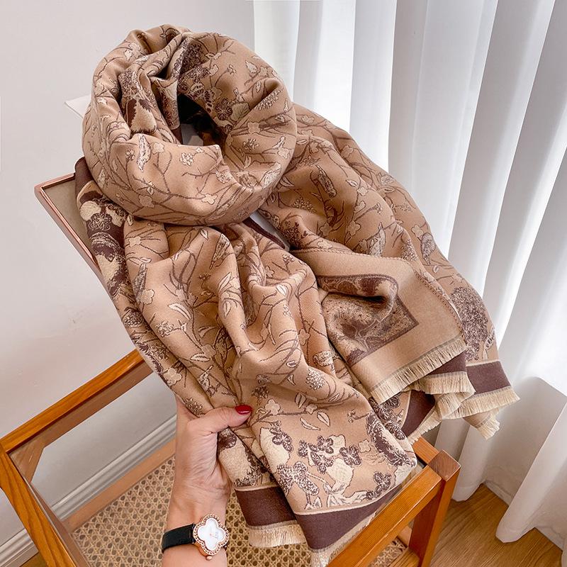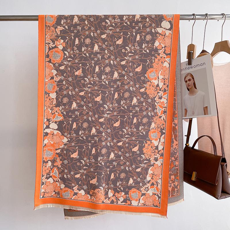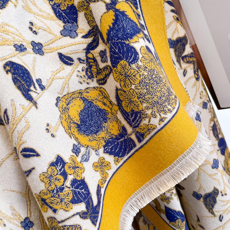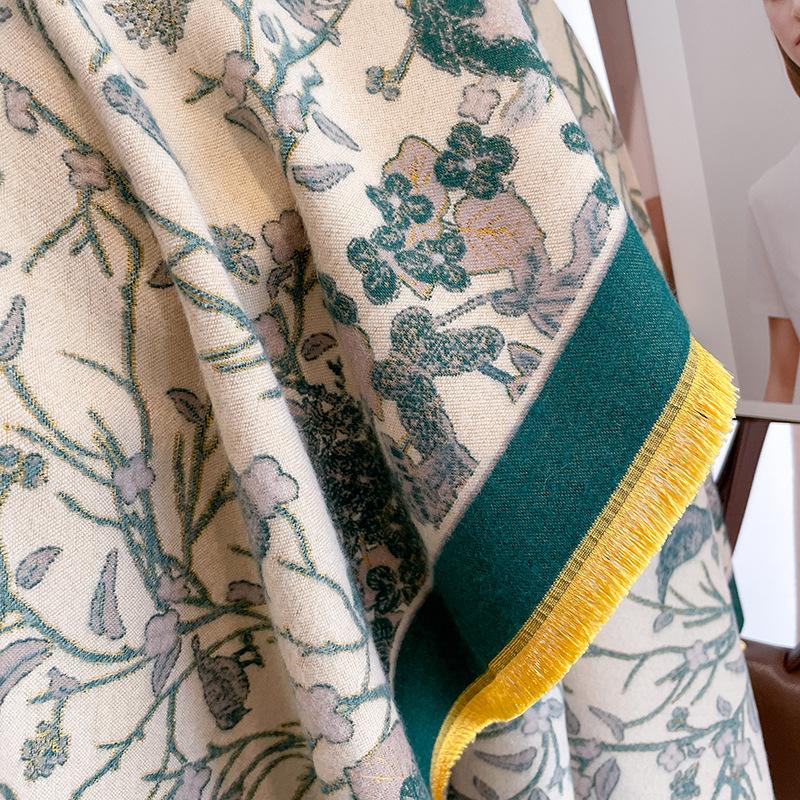 Bufanda de cachemira de moda retro francesa con flores y pájaros para mujer, otoño e invierno 2023, nueva bufanda gruesa, chal cálido con aire acondicionado