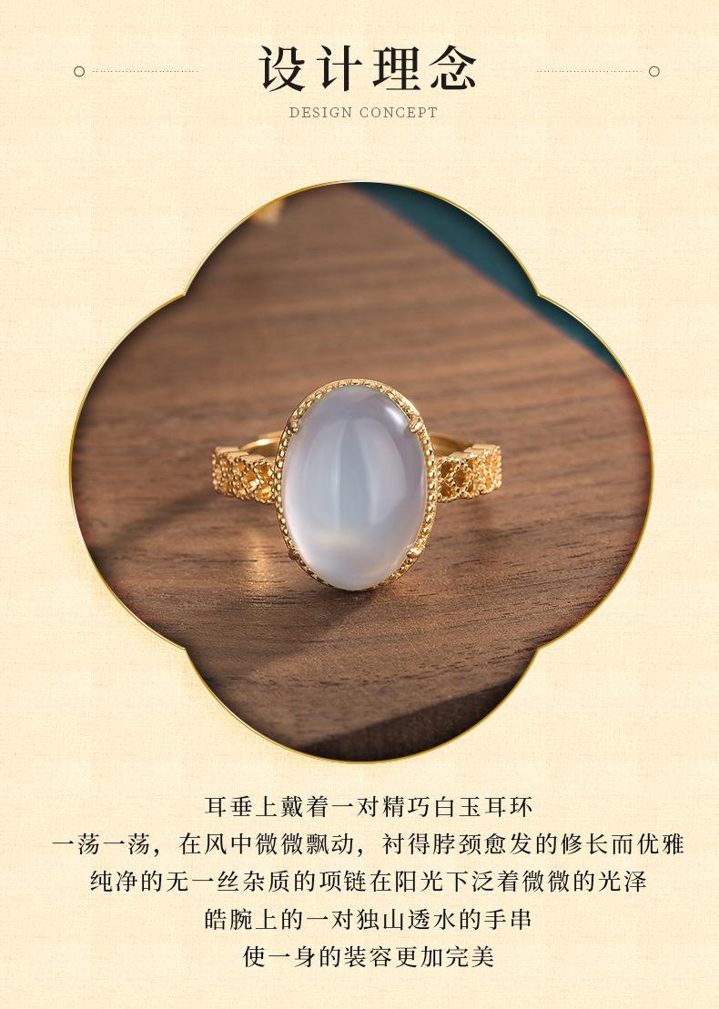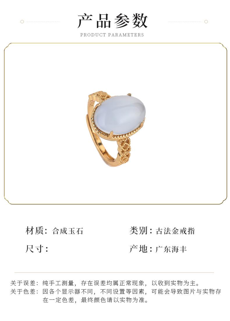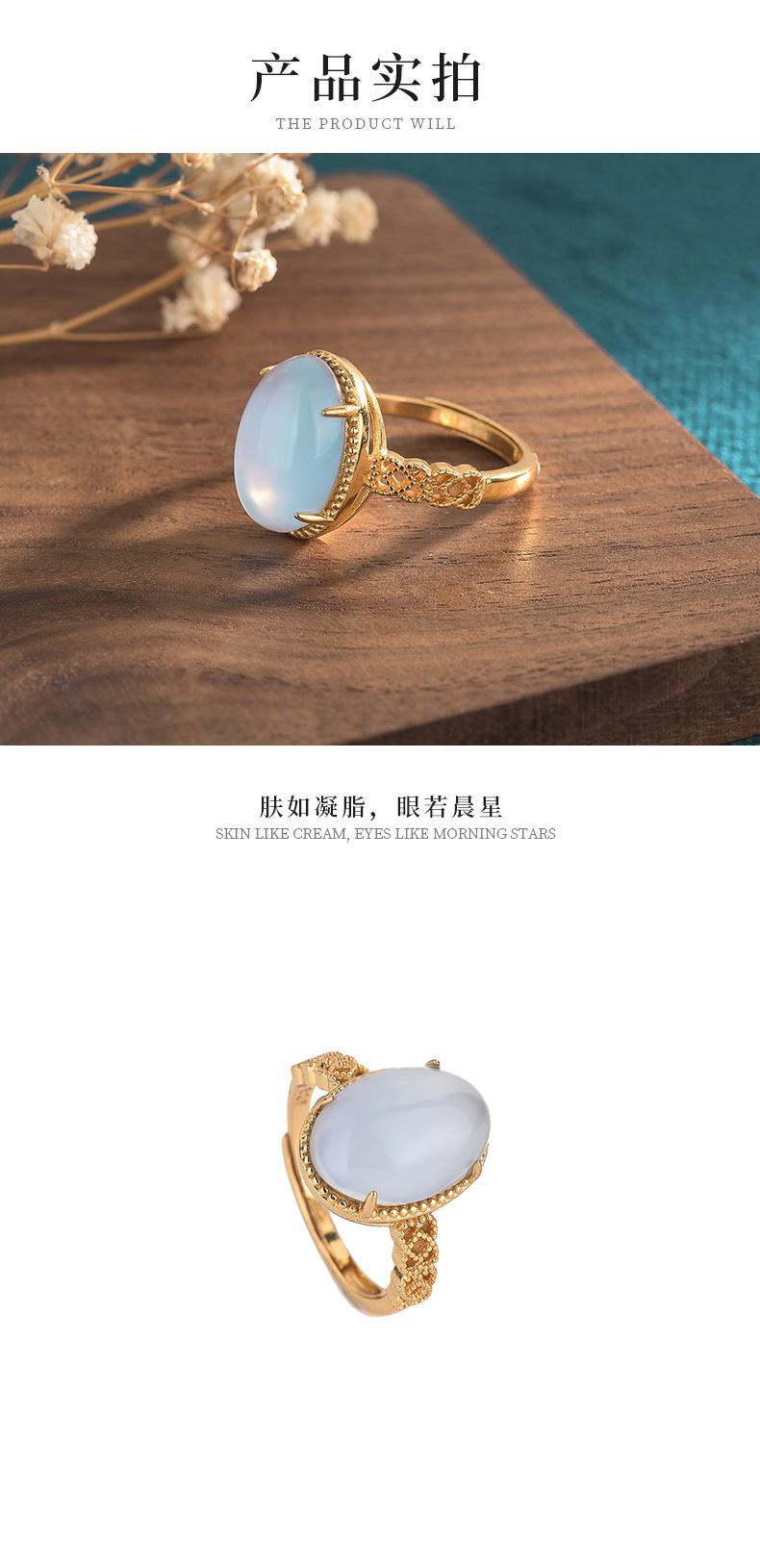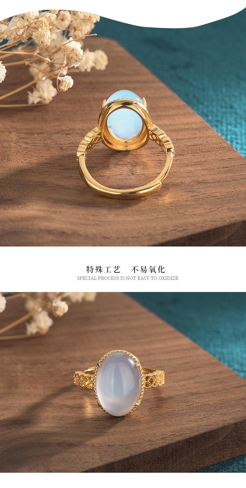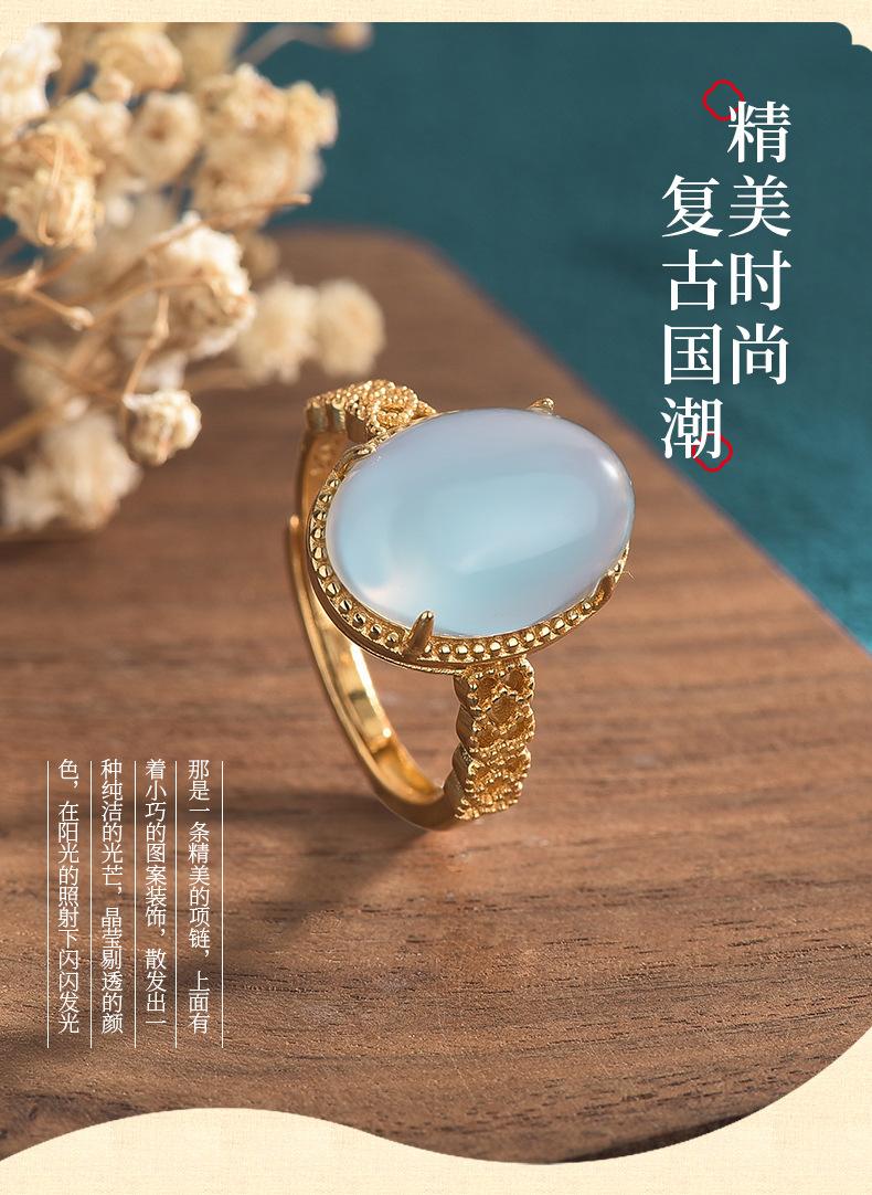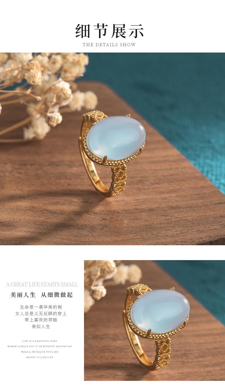 Anillo retro de ágata calcedonia natural de oro antiguo con accesorios de Hanfu para disfraz antiguo chino en vivo de celebridades en línea para mujeres
