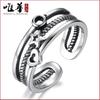 Nuevo anillo retro tailandés de plata con forma de corazón y seis palabras auténticas, Pixiu, para parejas, para hombres y mujeres, con personalidad abierta.