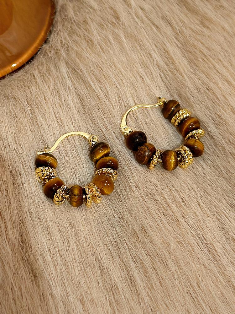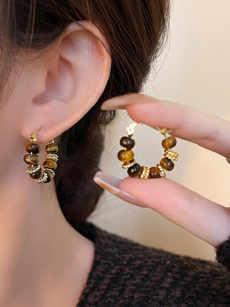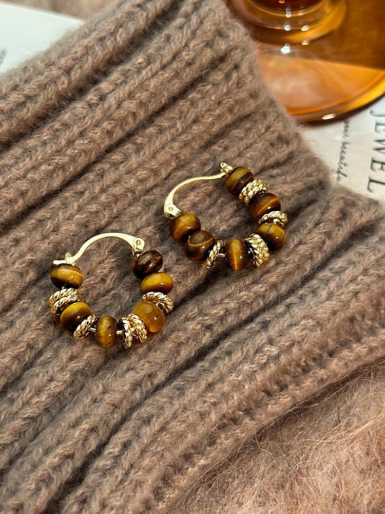 Pendientes vintage de piedra de ojo de tigre de Maillard 2023, diseño de nicho femenino, pendientes de temperamento exquisito de alta calidad que combinan con todo.