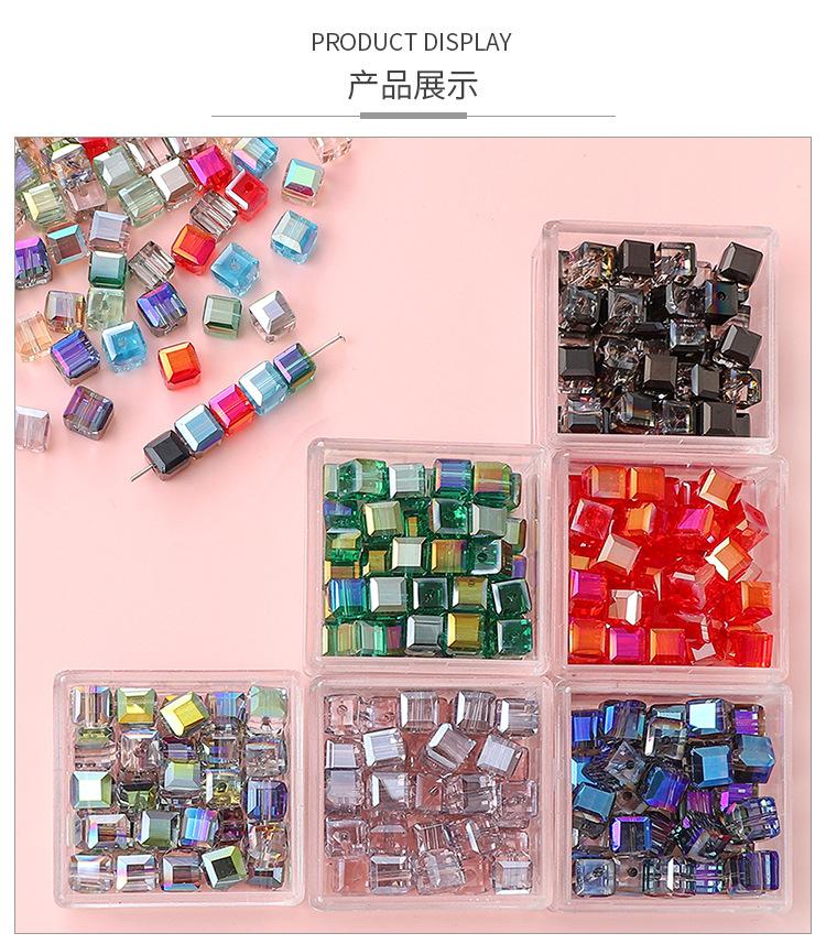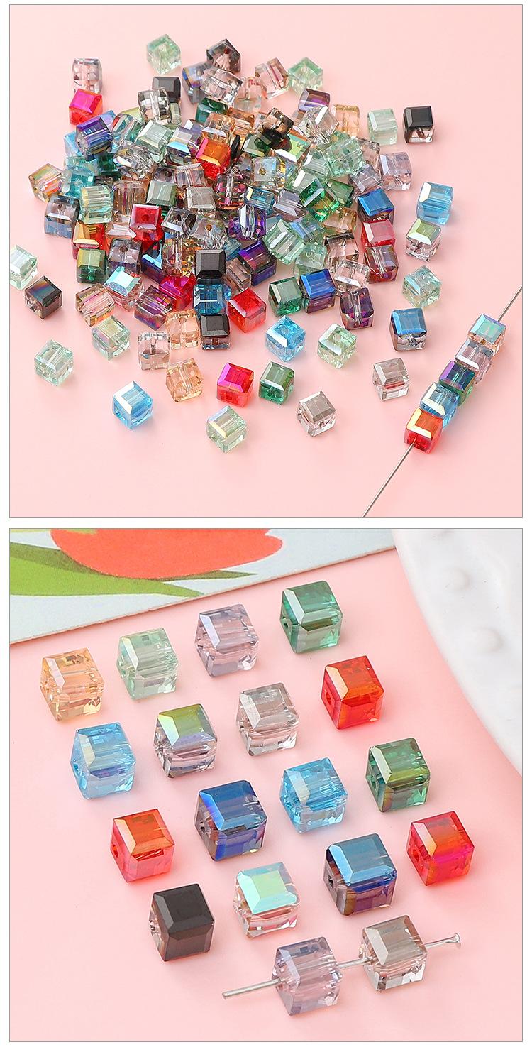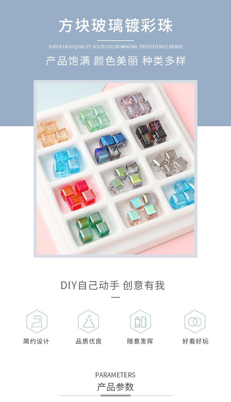 Cuentas sueltas de vidrio cuadrado chapado en color, 8 x 8 mm, con agujeros rectos, para hacer tú mismo, pulseras y collares de cuentas hechos a mano.