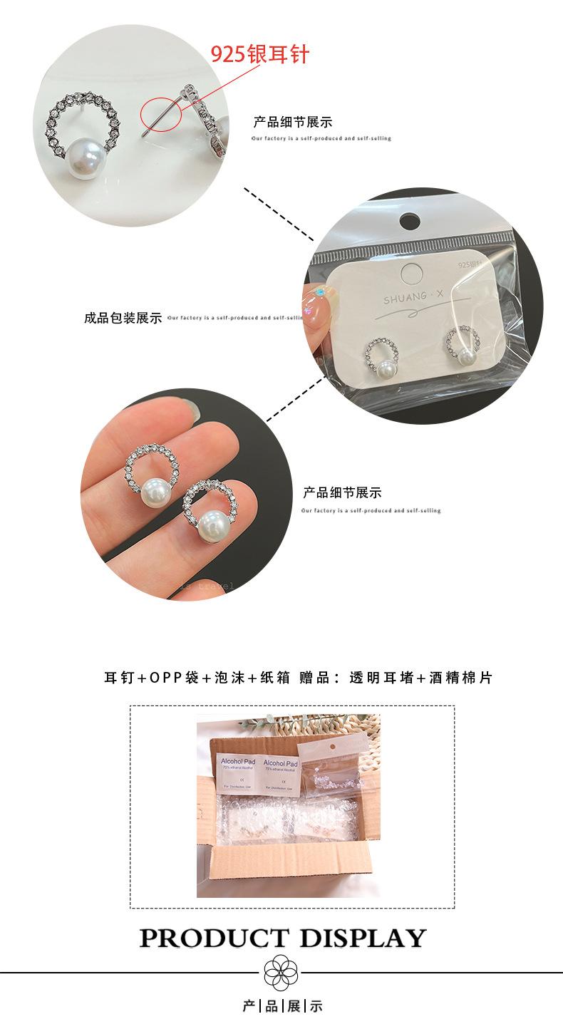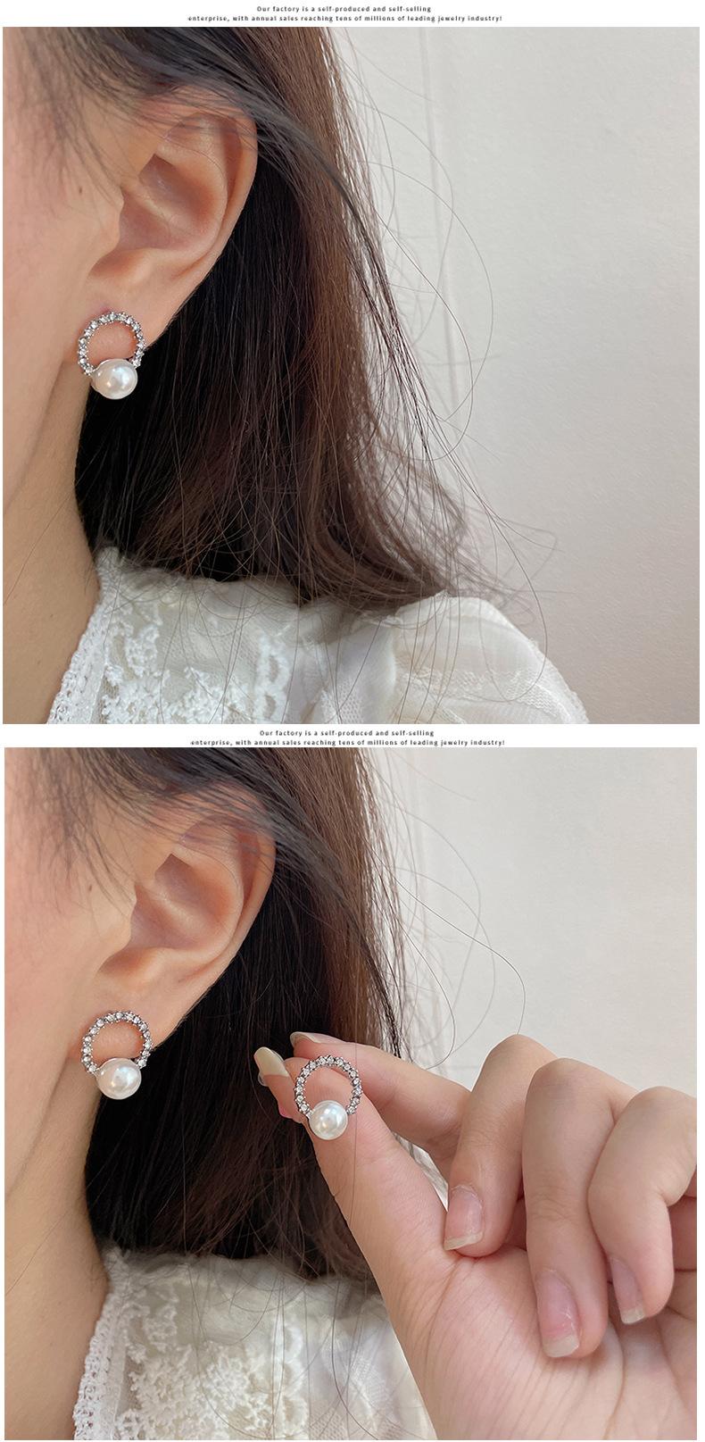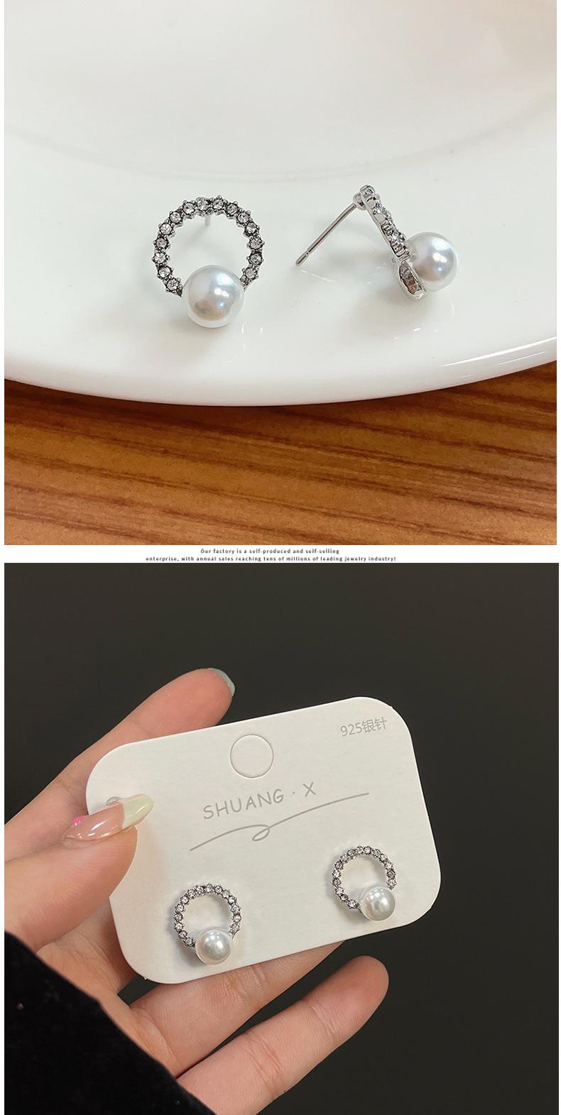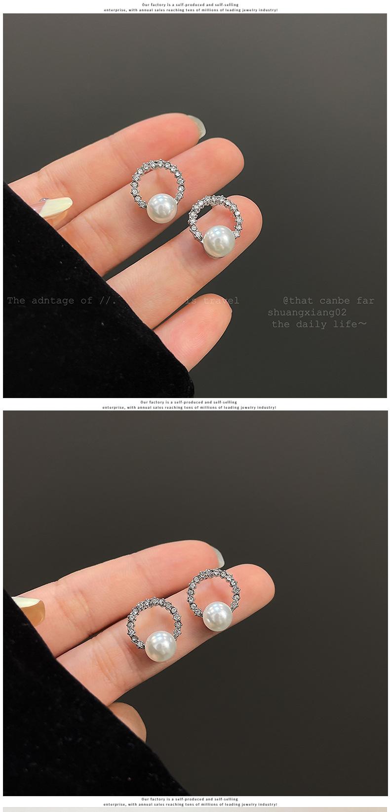 Pendientes de mujer de estilo coreano, sencillos, de uso diario, con forma de aguja de plata y diamantes circulares, estilo retro, exquisitos, con perlas que combinan con todo, elegantes.