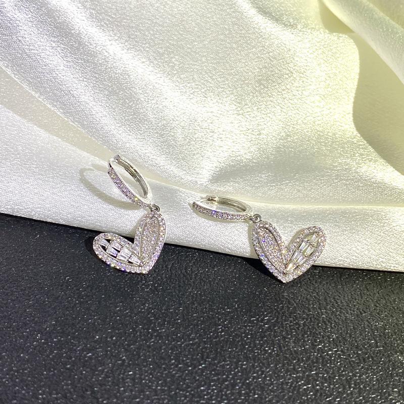Pendientes de estilo francés con microincrustaciones de circonitas de Dongdaemun, de Corea del Sur, con hebilla de amor, sencillos, ligeros y lujosos.