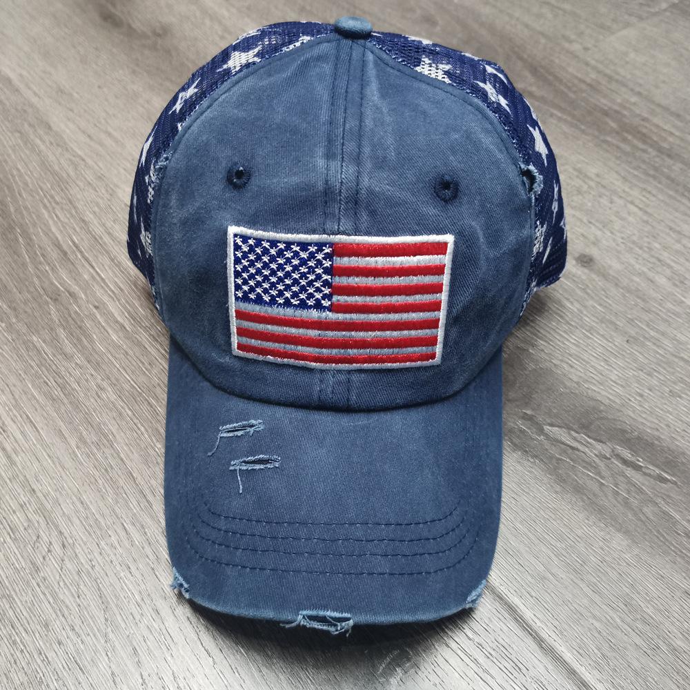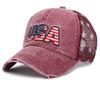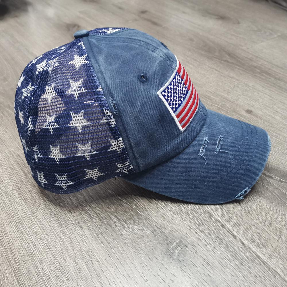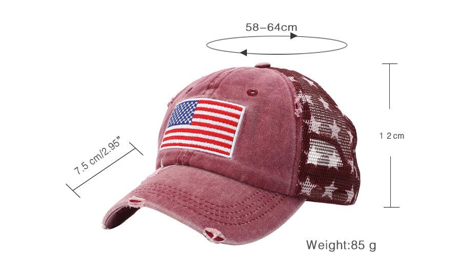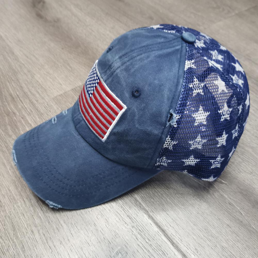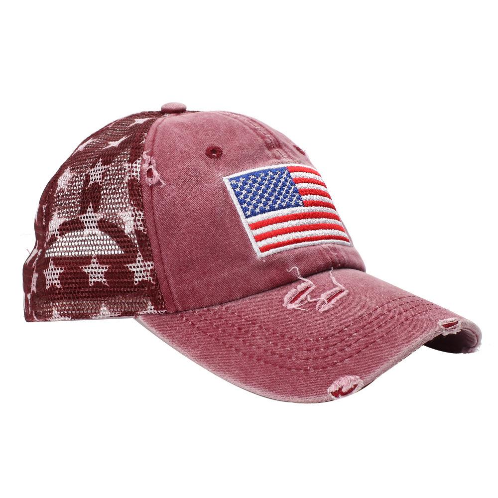 Gorra de Béisbol Bordada con Bandera Americana Nueva con Gorra de Malla de Cinco Estrellas Sombrero del Día de la Independencia Sombrero Lavado Transfronterizo