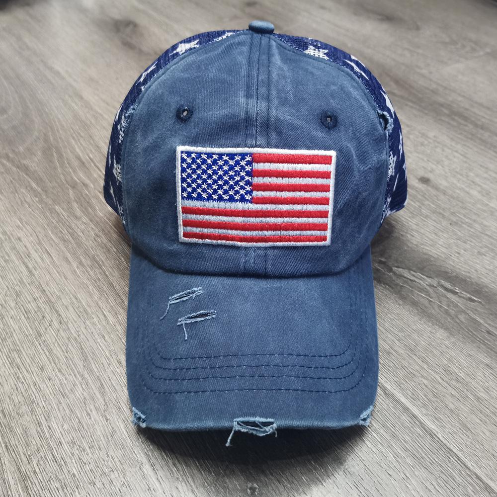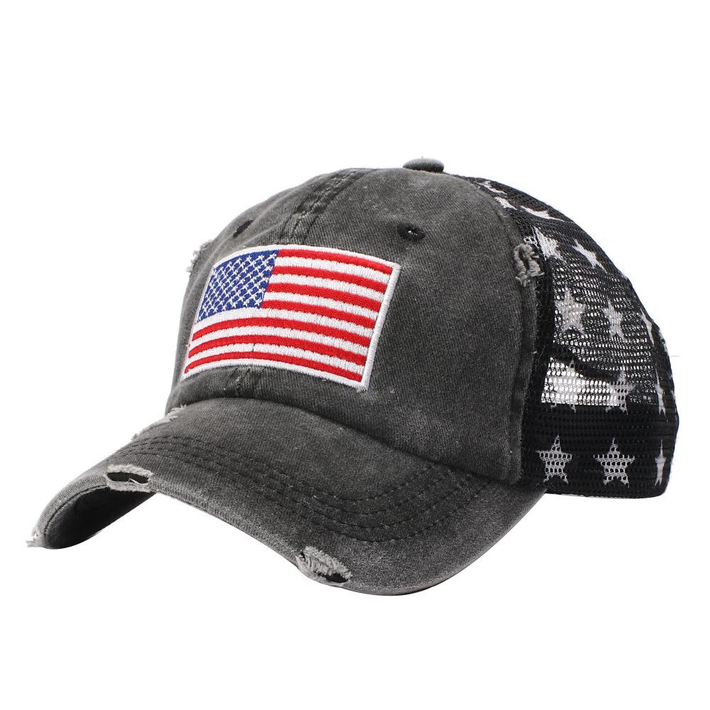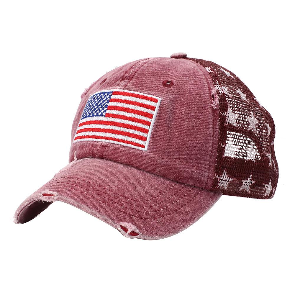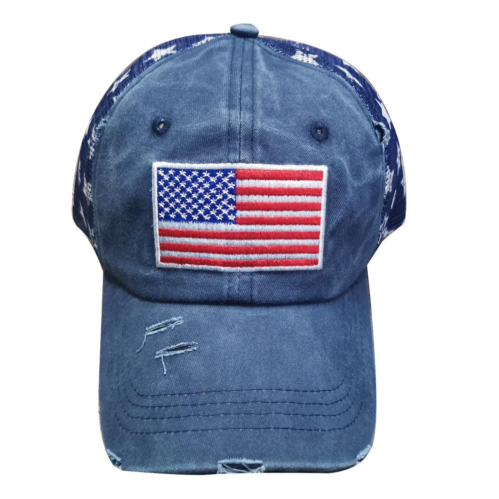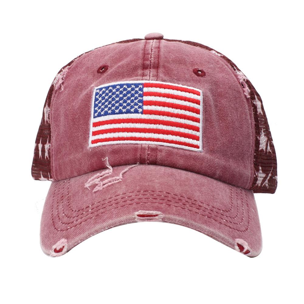 Gorra de Béisbol Bordada con Bandera Americana Nueva con Gorra de Malla de Cinco Estrellas Sombrero del Día de la Independencia Sombrero Lavado Transfronterizo