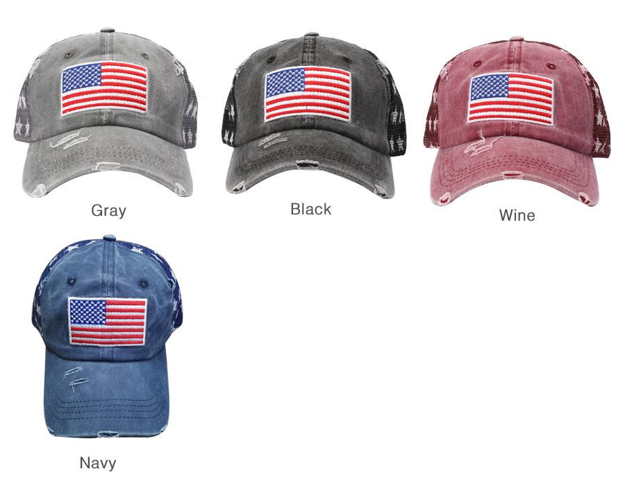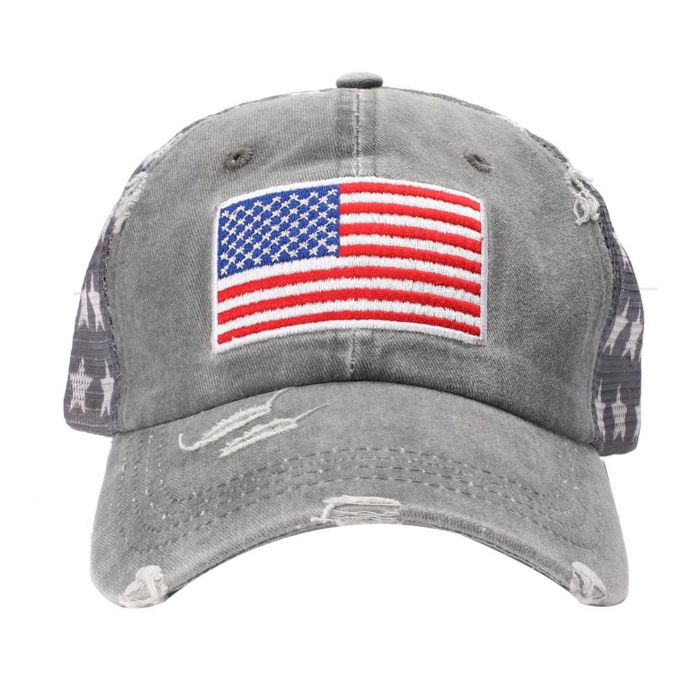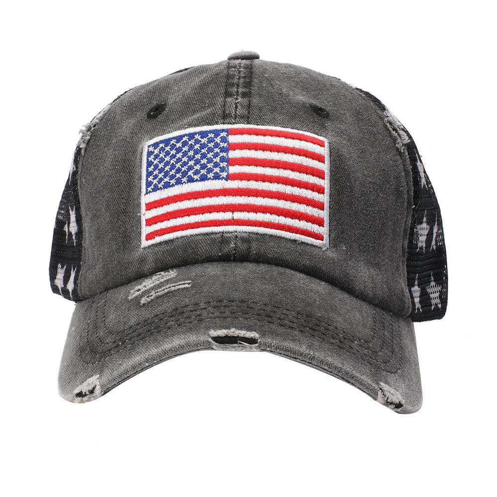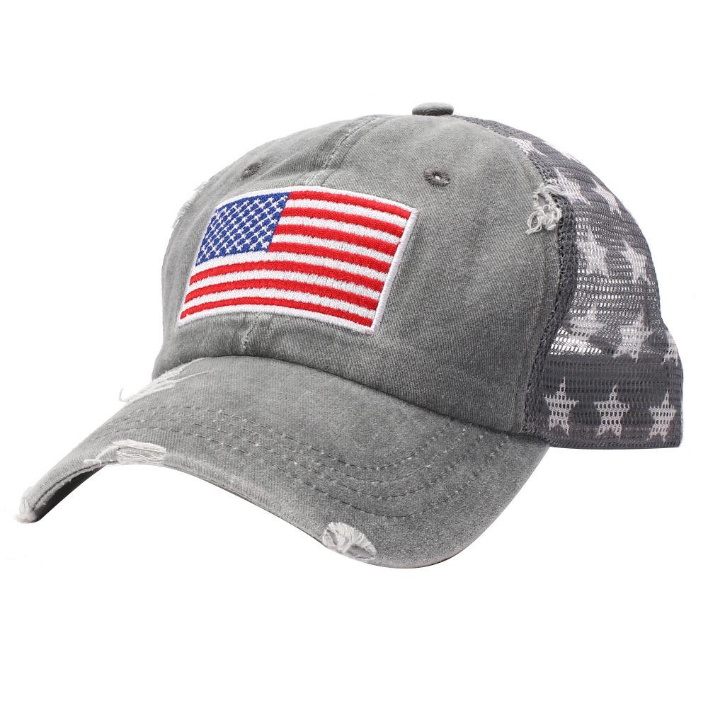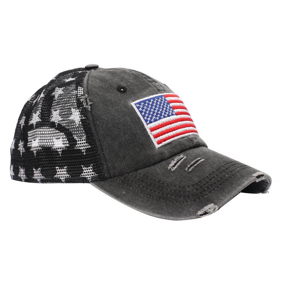 Gorra de Béisbol Bordada con Bandera Americana Nueva con Gorra de Malla de Cinco Estrellas Sombrero del Día de la Independencia Sombrero Lavado Transfronterizo