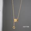 Collar con candado de acero de titanio y oro rosa de larga duración para mujer, estilo coreano, joyería personalizada de moda popular en Internet, colgante para cinturón de cuello, cadena de clavícula Ping An Fu