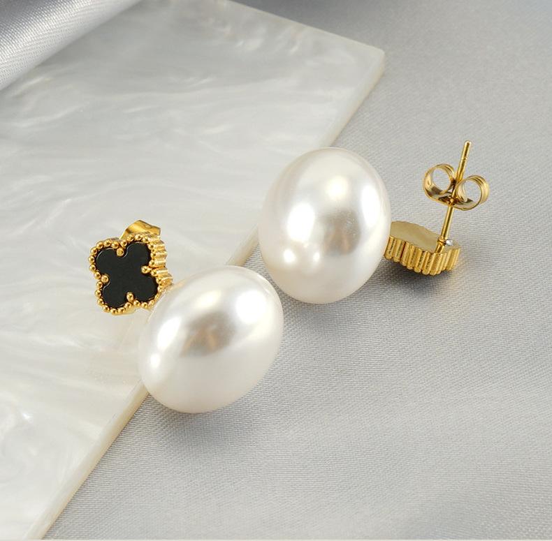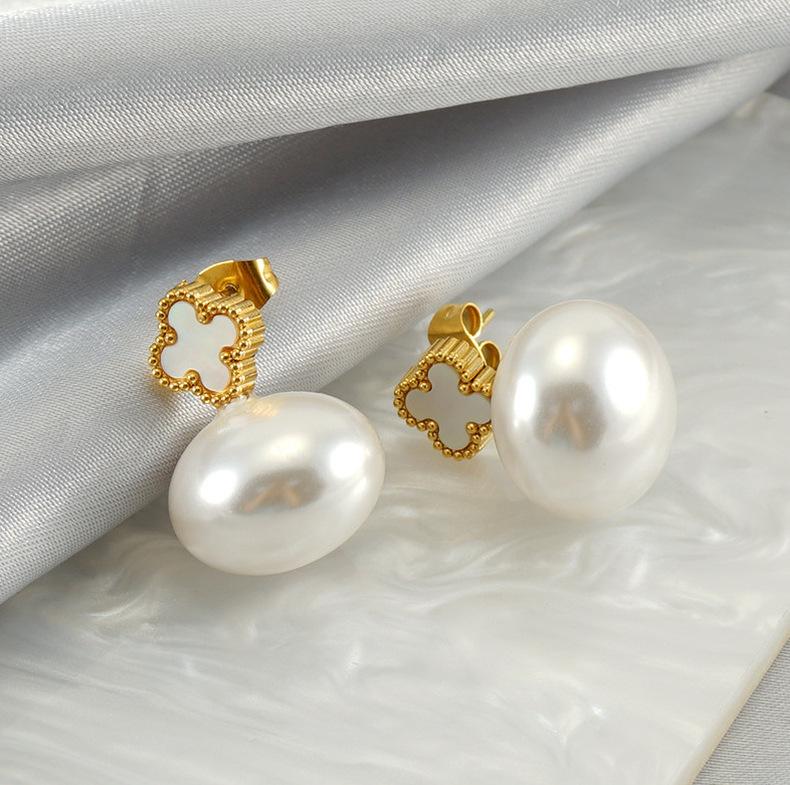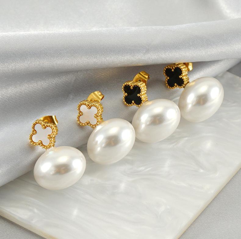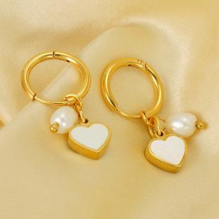 Pendientes de perlas francesas de acero de titanio transfronterizo para mujer, nicho de 18 quilates, moda europea y americana, pendientes de amor de alta gama, venta al por mayor