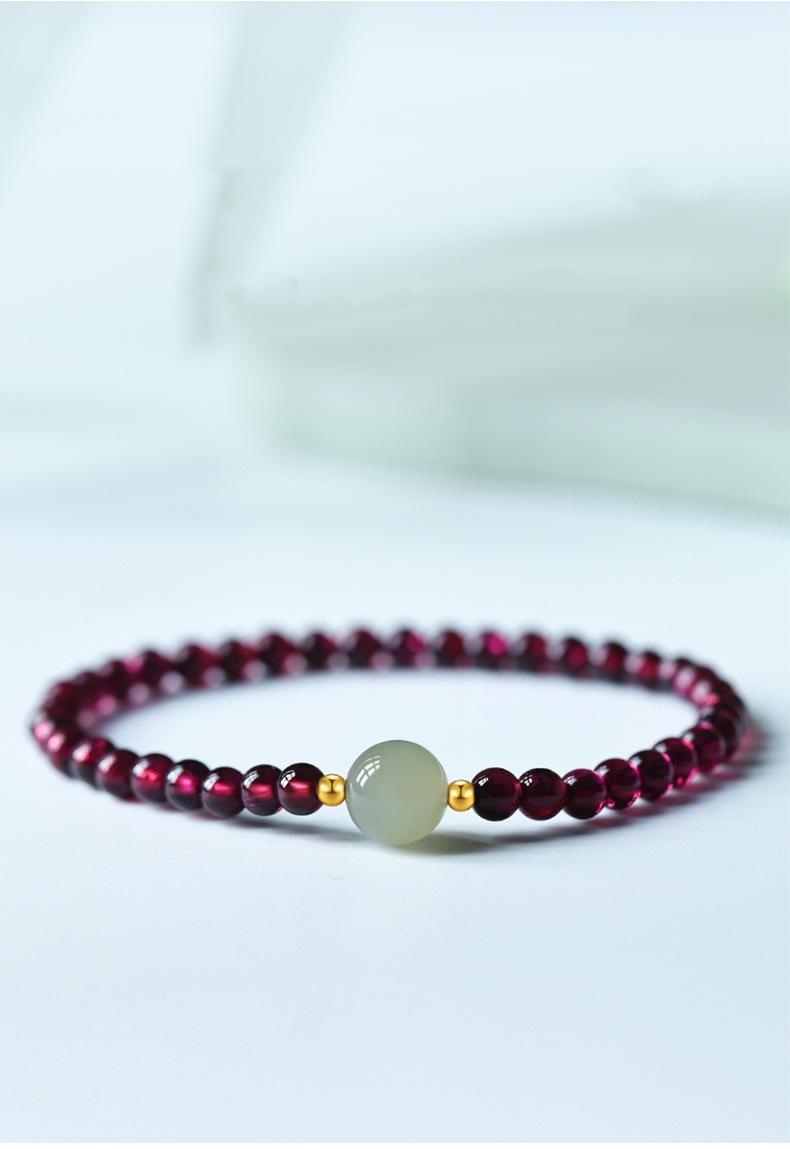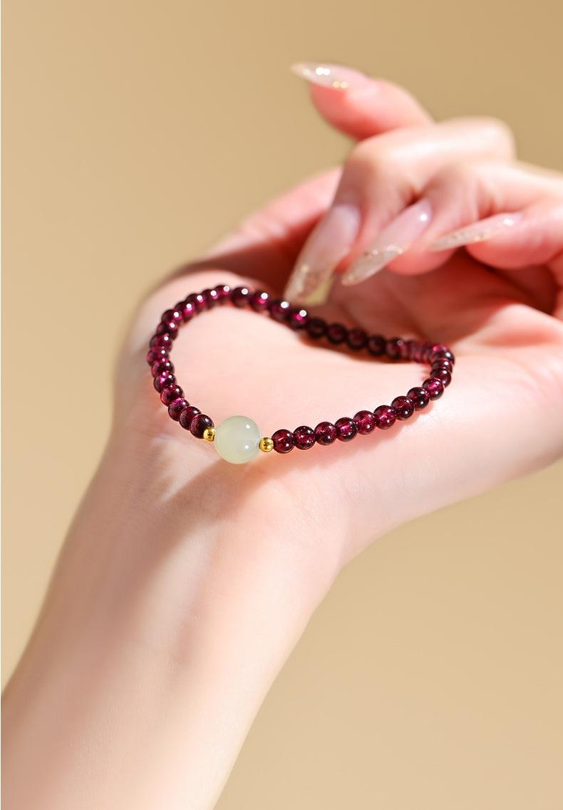 Pulsera de granate natural para mujer, pulsera de cristal con cuentas, jade Hetian, nicho de lujo ligero, pulsera exquisita, venta al por mayor