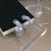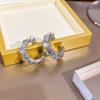 Aretes de Aro en C de Aguja de Plata de Lujo Ligero Nuevo de Alta Gama con Circonita de Diamante Completo Aretes Distintivos Exquisitos de Moda para Mujeres