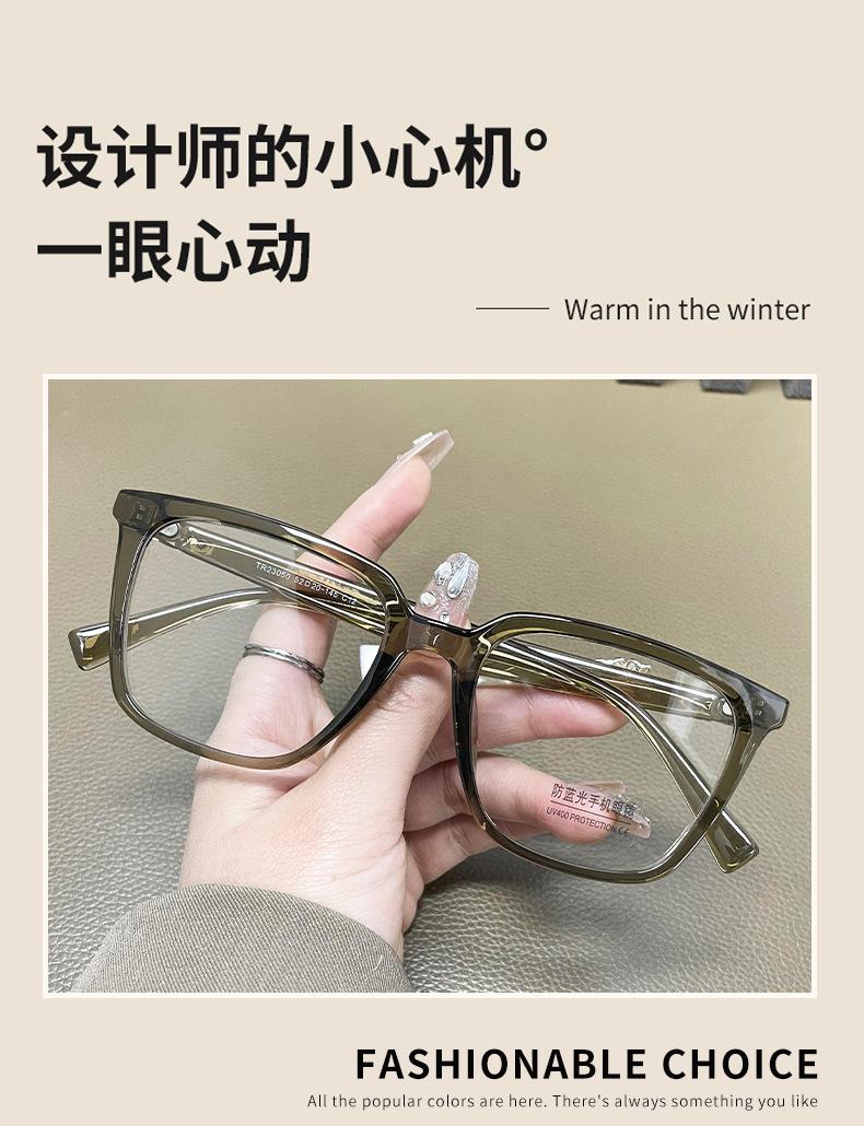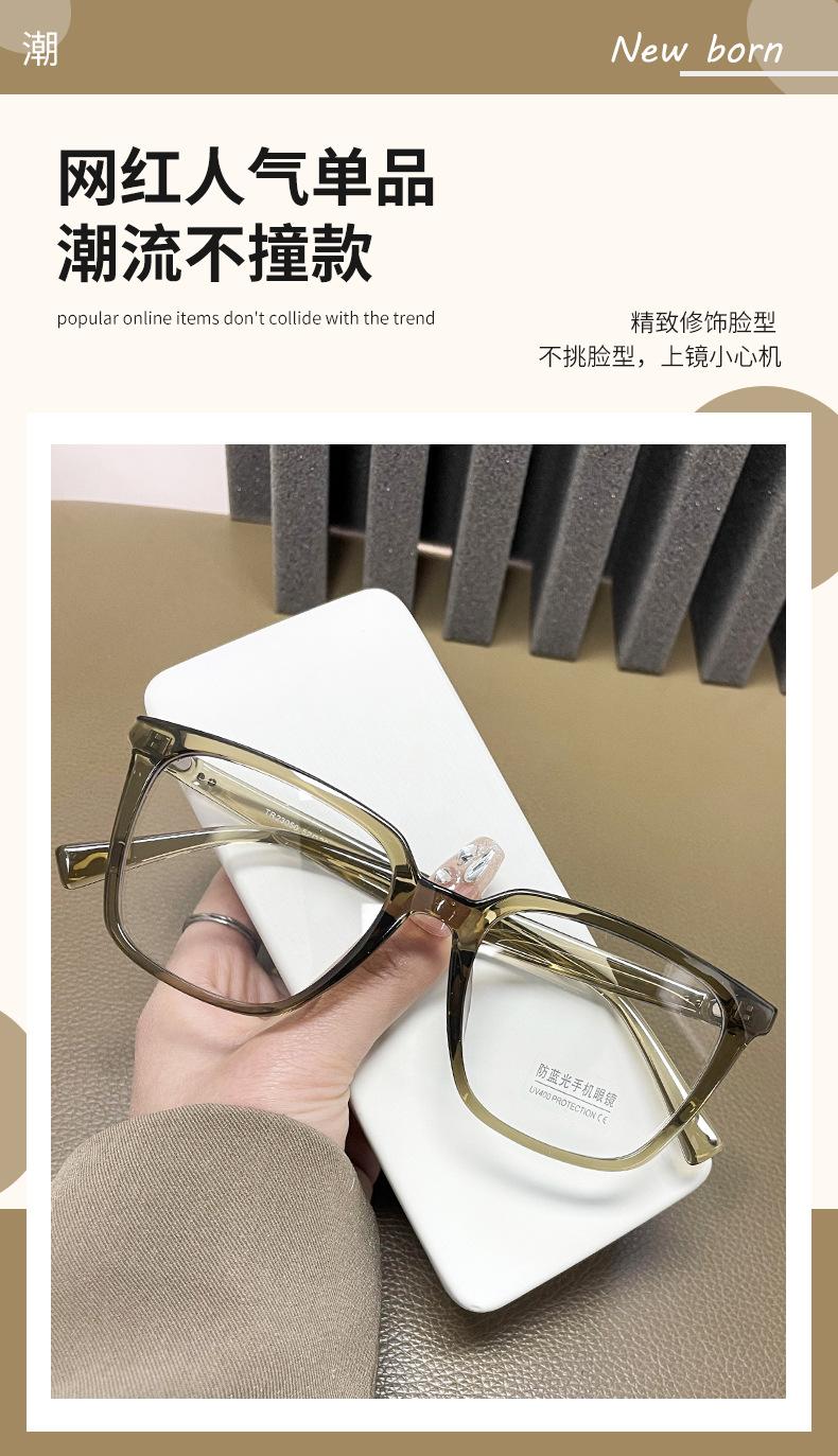 Tr23050 Nuevos Lentes de Montura Cuadrada Color Arena Marrón Estilo K Versátiles Lentes Anti-Luz Azul Modernos Ins Montura de Gafas Planas