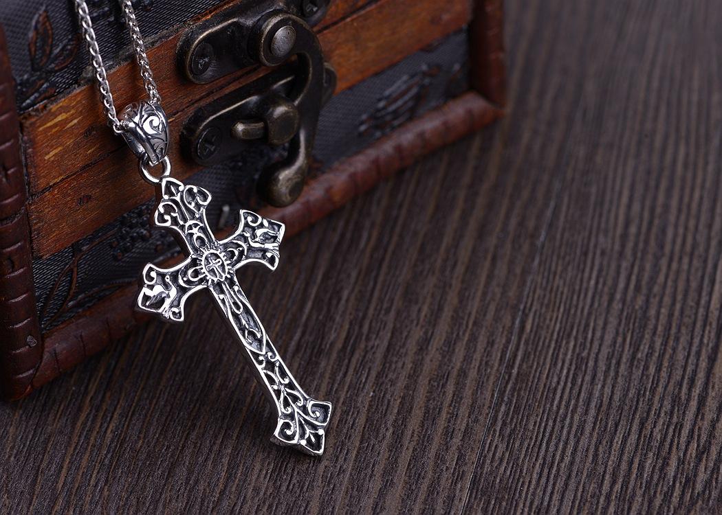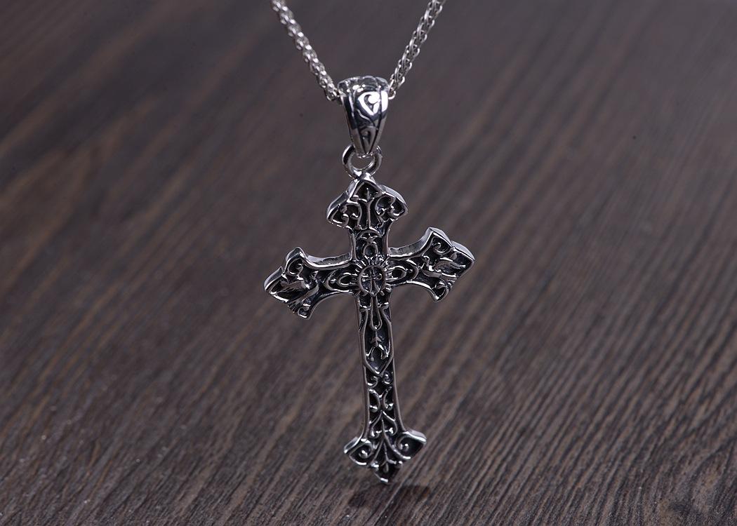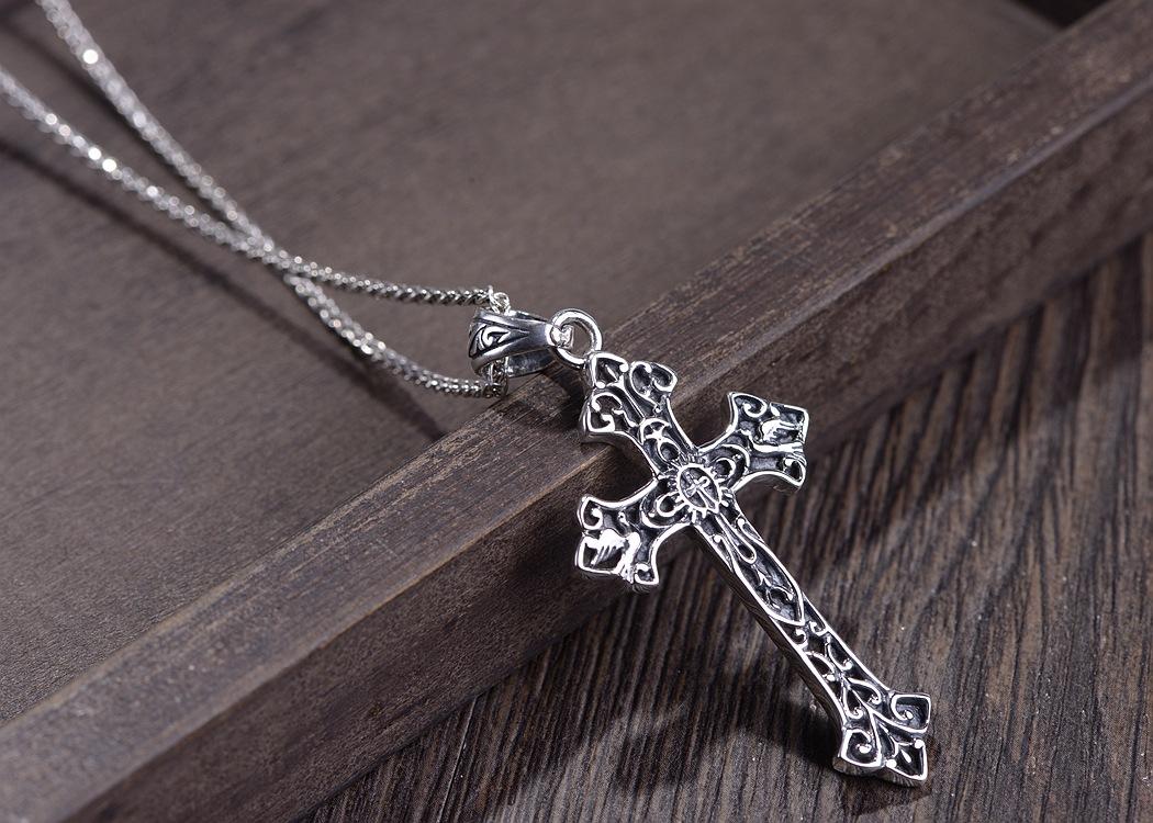 Colgante de cruz hueca con diseño retro de plata S925 de Golden Deer King para hombre, diseño simple, plata tailandesa, venta al por mayor
