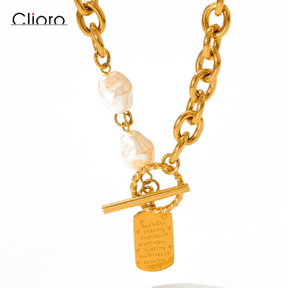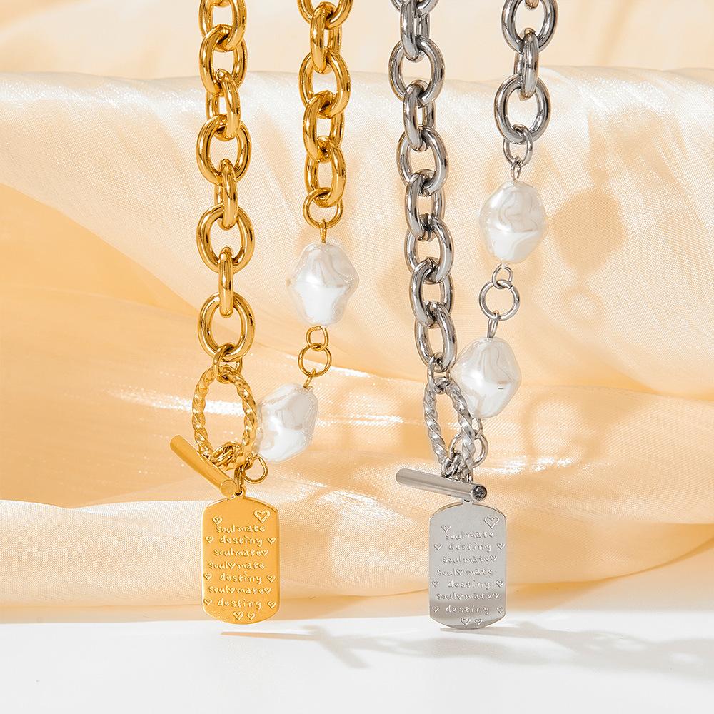 Collar con costura de perlas, moderno collar de estilo neutro para hombres y mujeres, accesorios de cadena de clavícula, cadena de suéter de acero inoxidable punk
