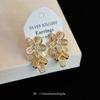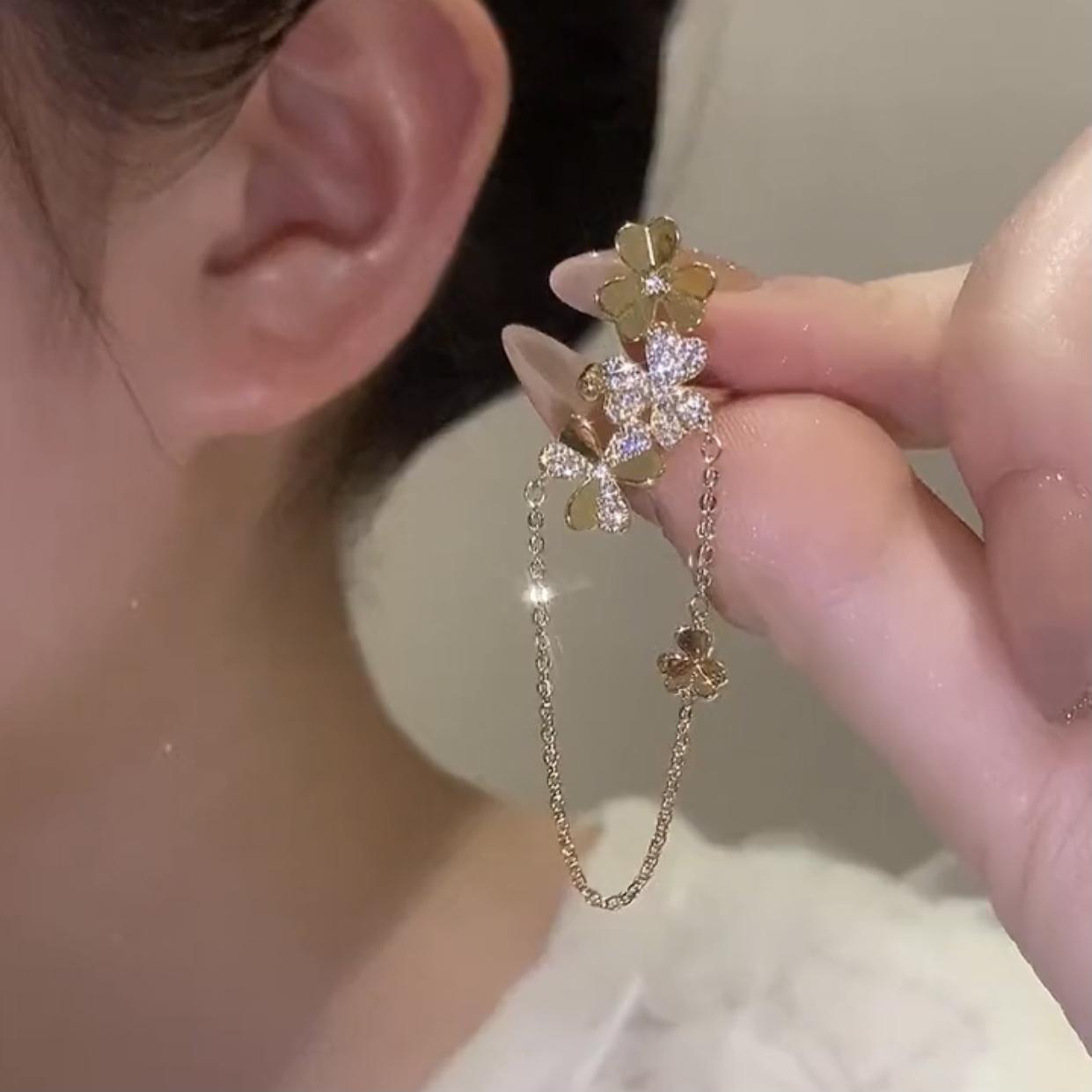 Pendientes de lujo ligeros y elegantes con forma de flor de tres pétalos, sin orificios, pequeños y exquisitos, con microincrustaciones de circonitas y celebridades de Internet.