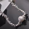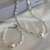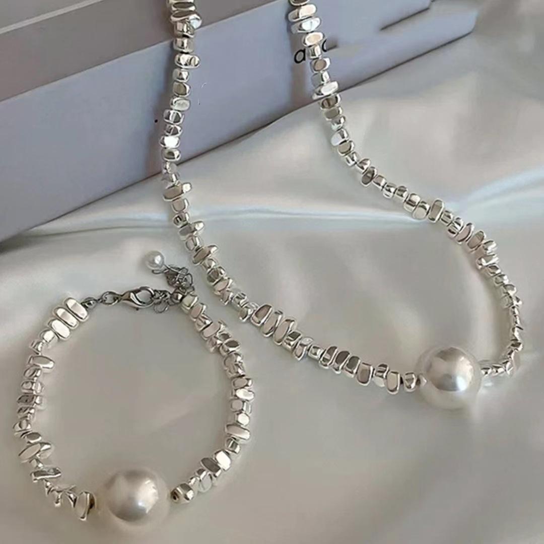Collar de perlas de plata para mujer, diseño de nicho, ligero, lujoso, sencillo, cuadrado, retro, cadena de clavícula combinable para mujer.