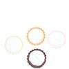 A plate of cream-coffee, a plate of cream-orange, a plate of cream-powder, a plate of cream-rice white, a plat...
