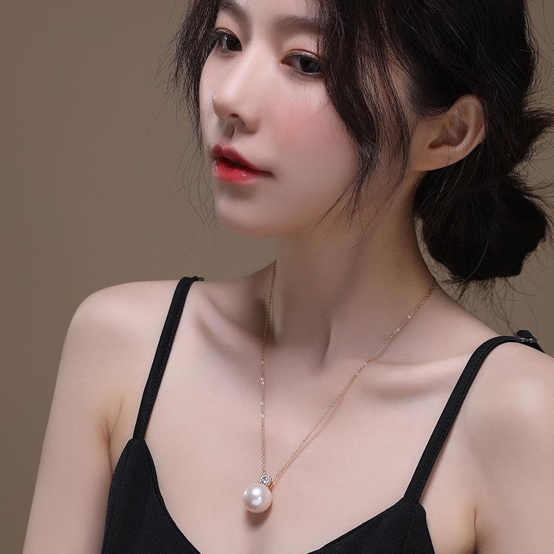 Collar de perlas de imitación de circonita única de diseño de alta calidad para mujer, nuevo y popular collar de clavícula con bombilla pequeña redonda de lujo y luz.