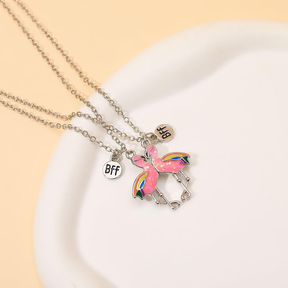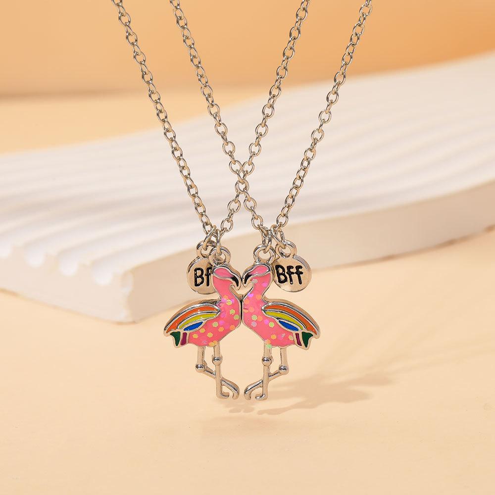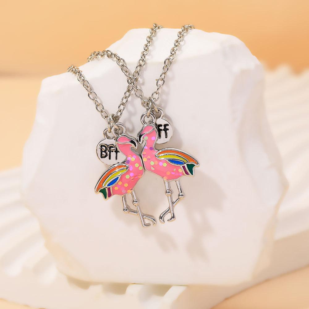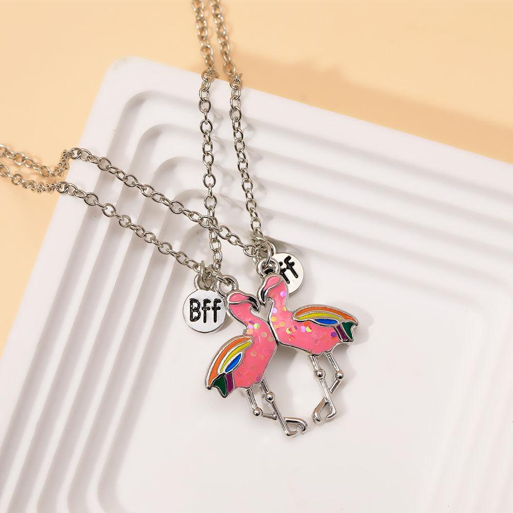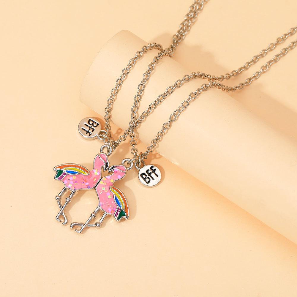 Temu, nuevo producto en oferta, colgante de aleación de flamenco con forma de gota de aceite, collar para mejores amigos, novias y niños, disponible al por mayor