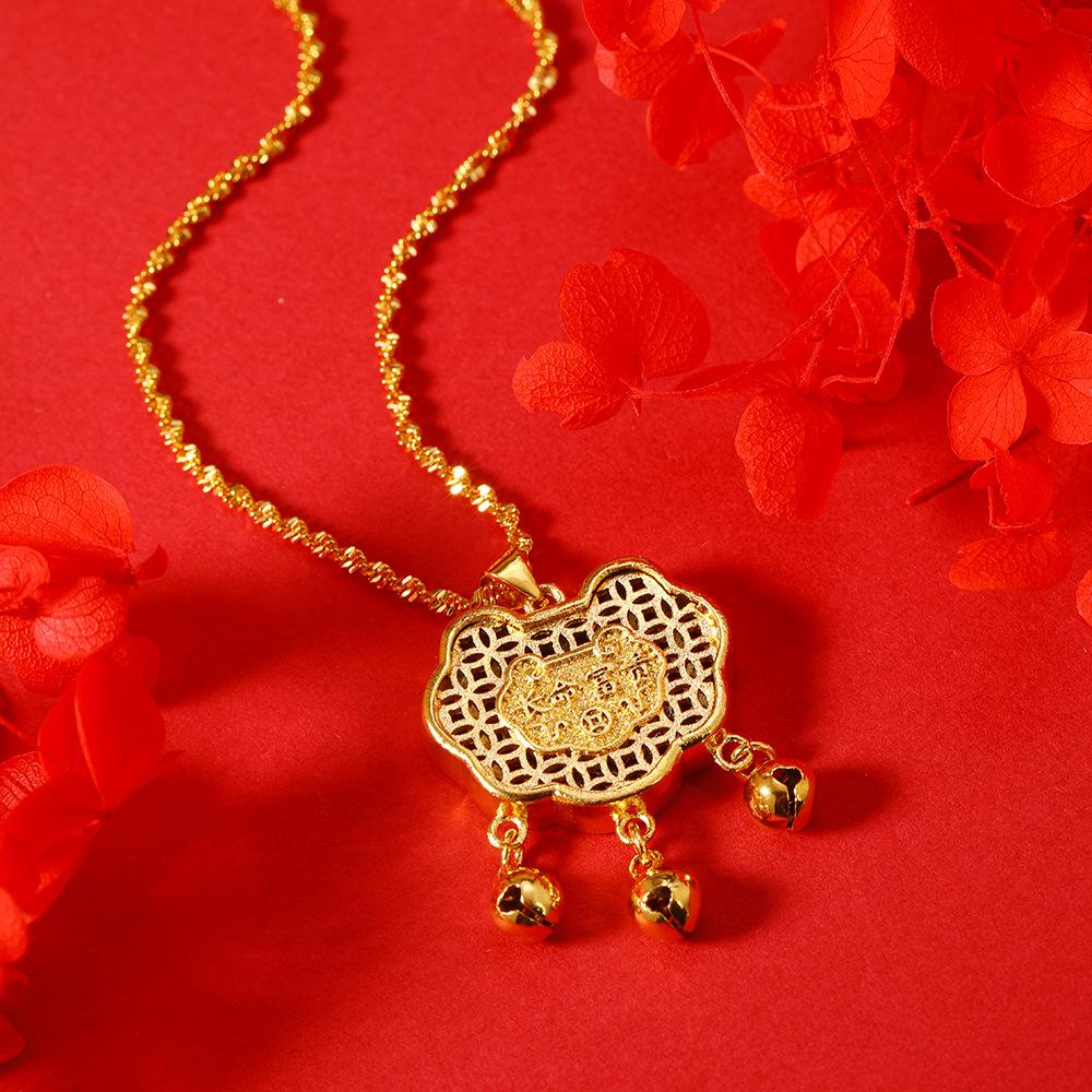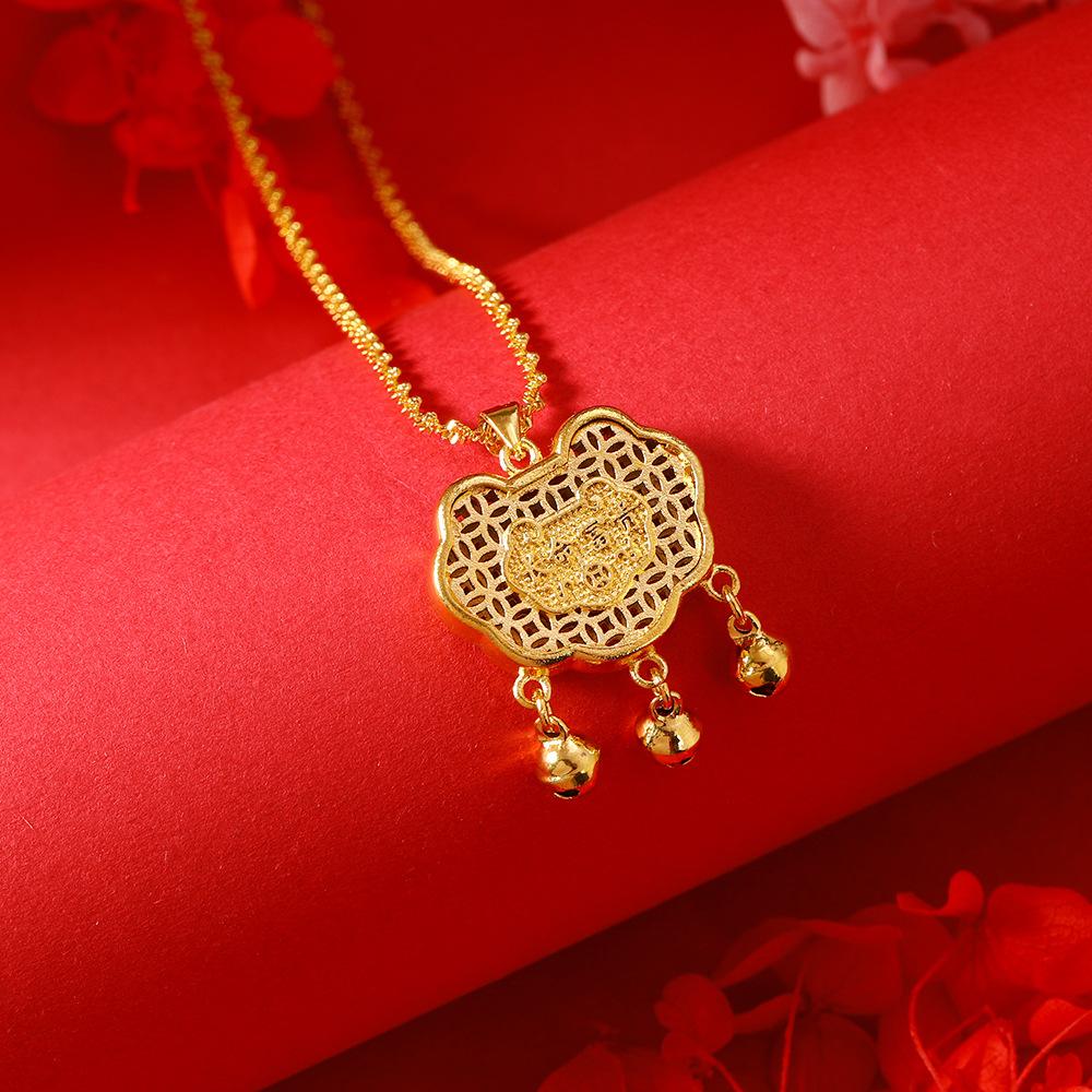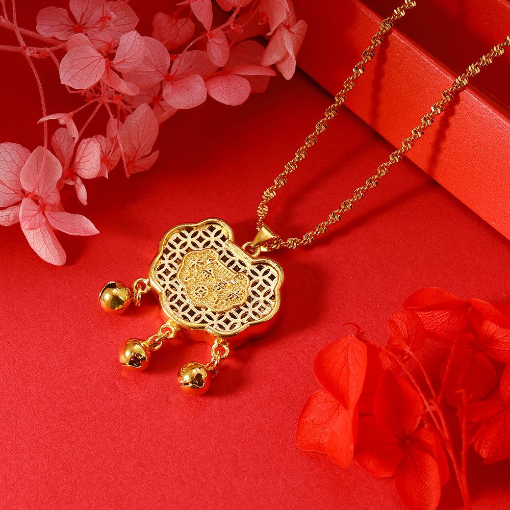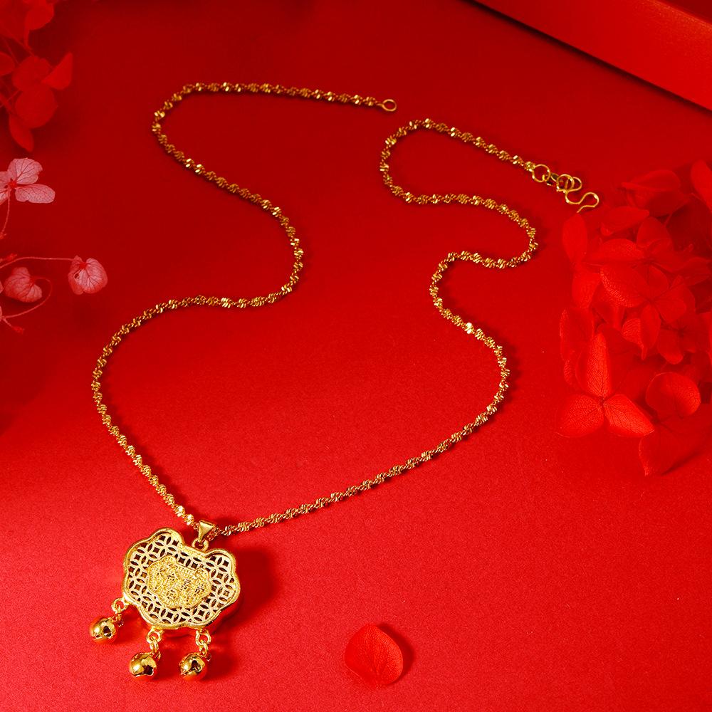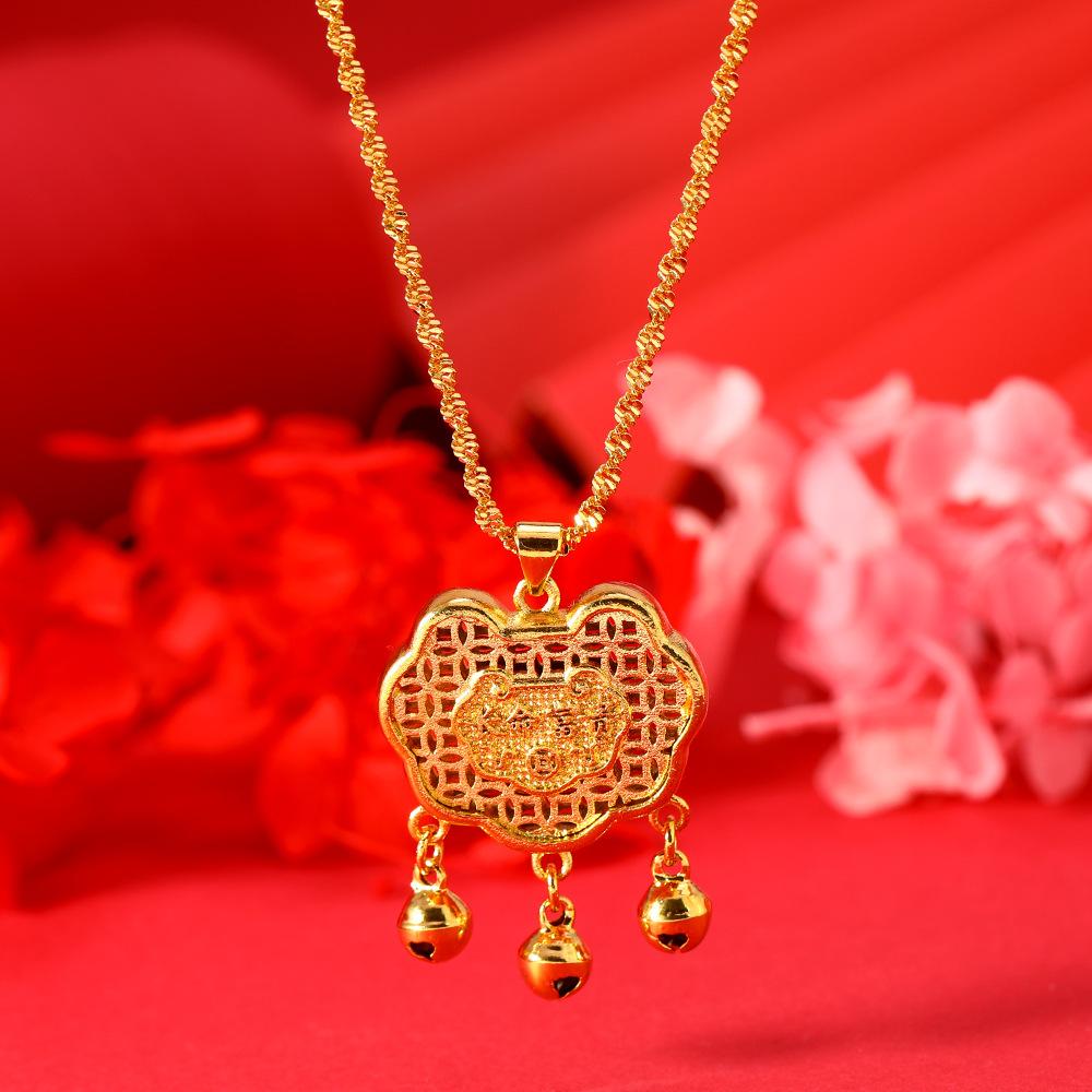 Long Life Rich Bell Lock Pendant Double Water Wave Necklace