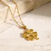 Collar con colgante de trébol de cuatro hojas de acero inoxidable y oro de 18 quilates, estilo nicho de verano, sencillo y de acero de titanio.