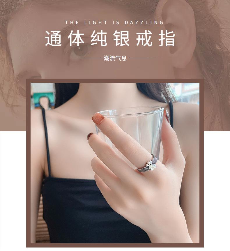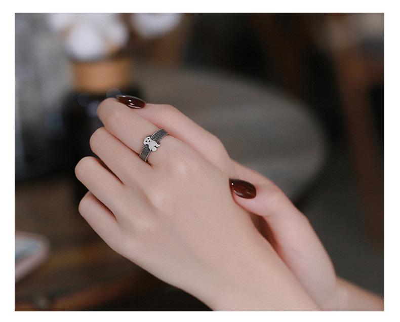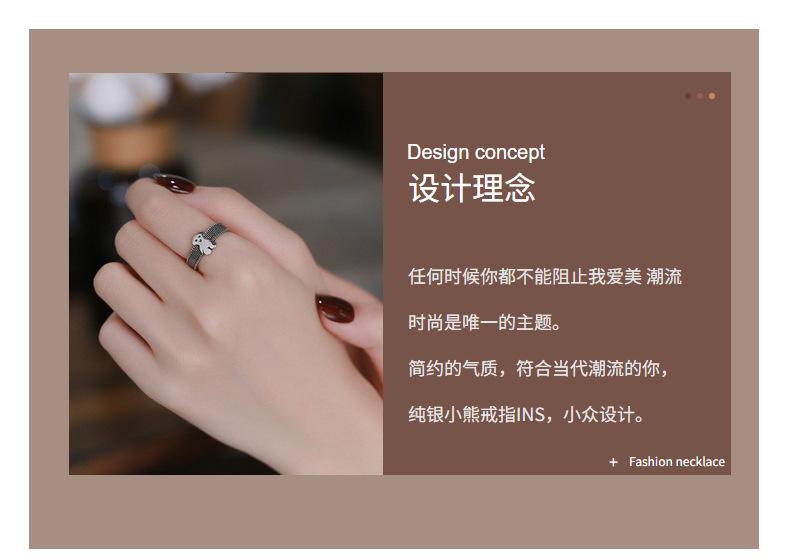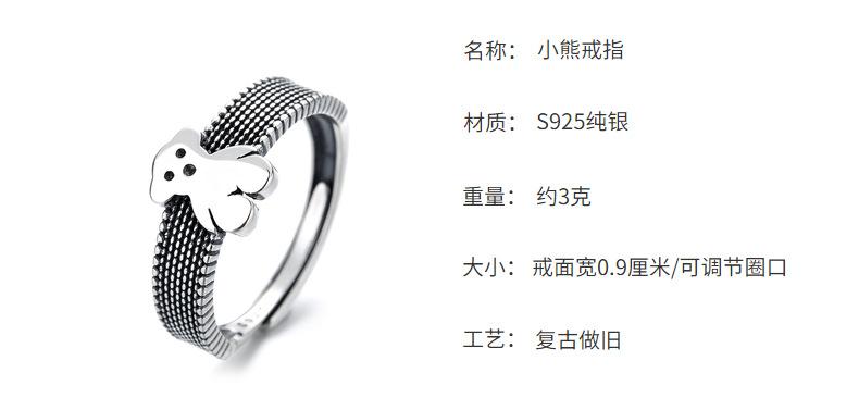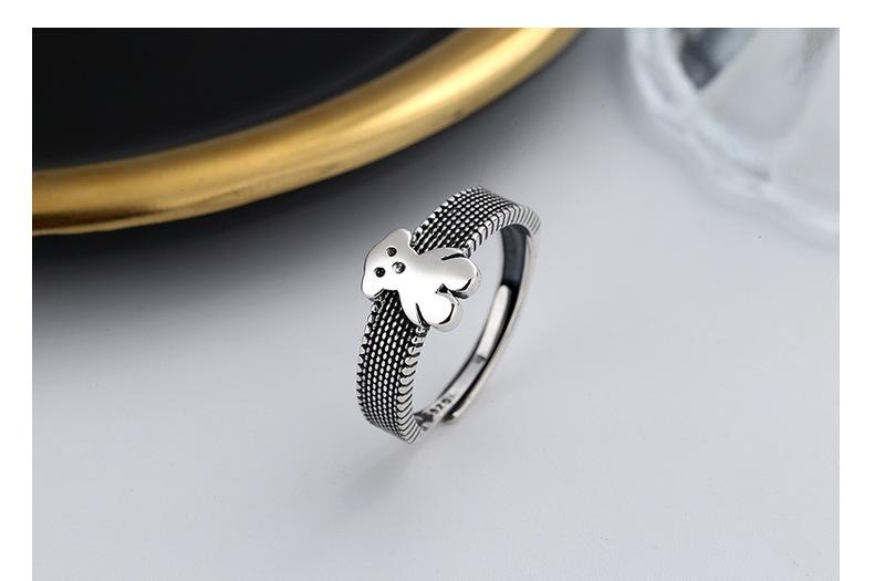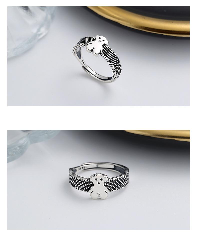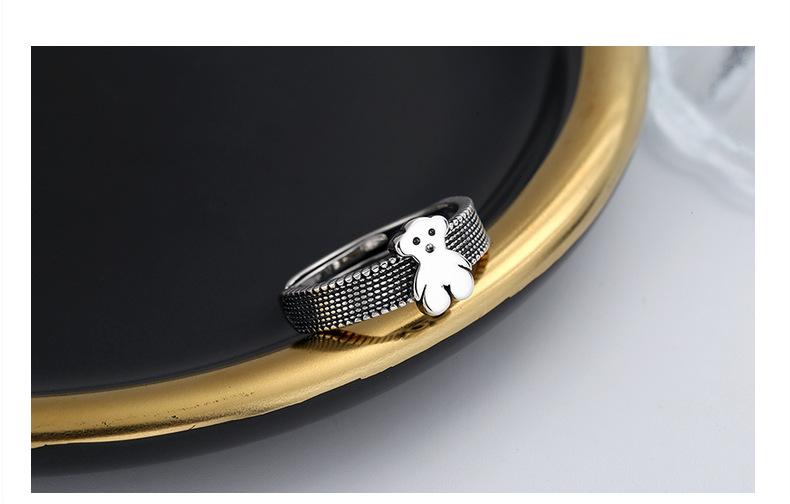 Anillo Chao Sheng S925 Plata de Ley Retro Estilo Hong Kong Oso Acurrucado Diseño Dulce y Cool Combinable Celebridad de Internet Anillo de Comida para Mujer