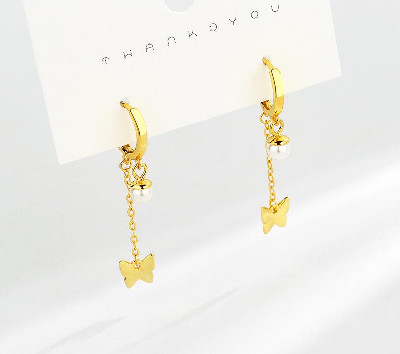 Pendientes de plata de ley S925 para mujer, nuevos y modernos, con diseño de mariposa, dorados y sencillos, estilo coreano.