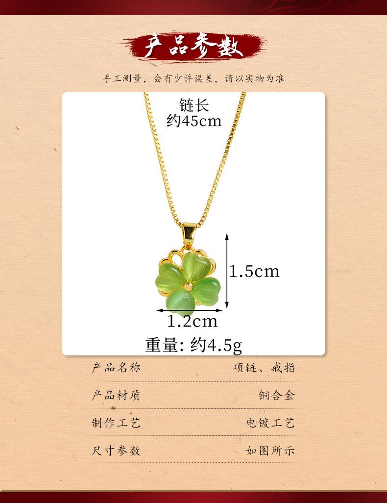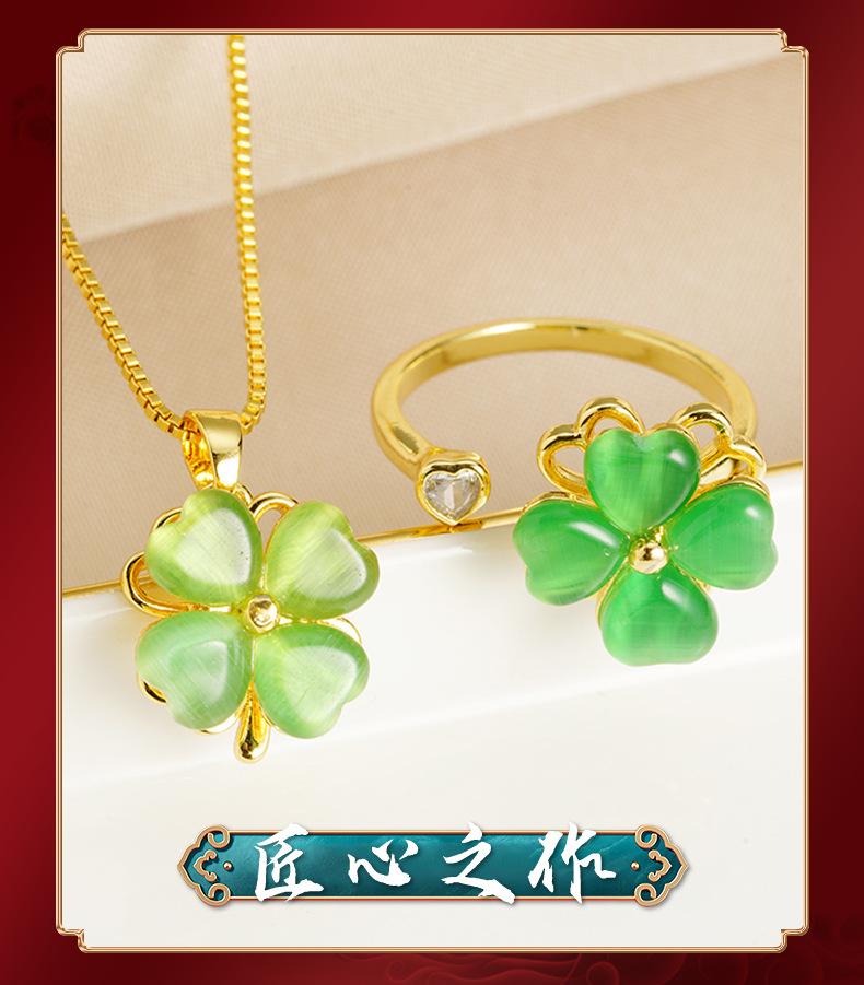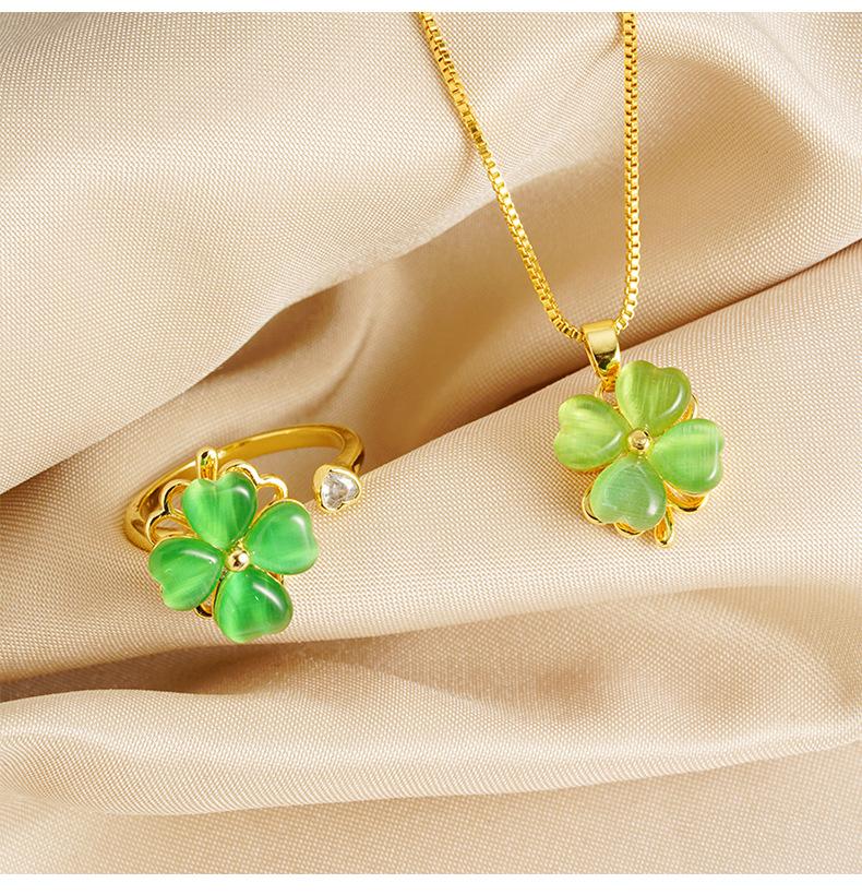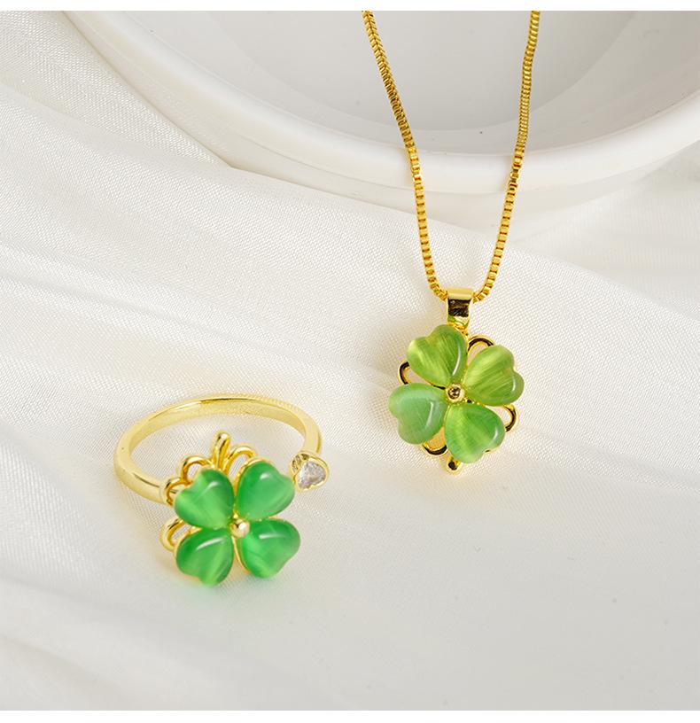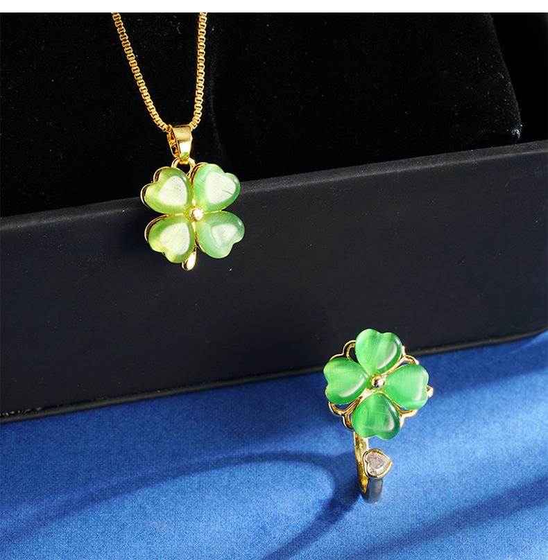 Compra Collar Transfronterizo Chapado en Oro de 18K Estilo Japonés y Coreano Europeo y Americano de Trébol de Cuatro Hojas Venta al por Mayor Joyería de Anillo Abierto Color Esmeralda al por mayor en Joom.pro