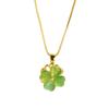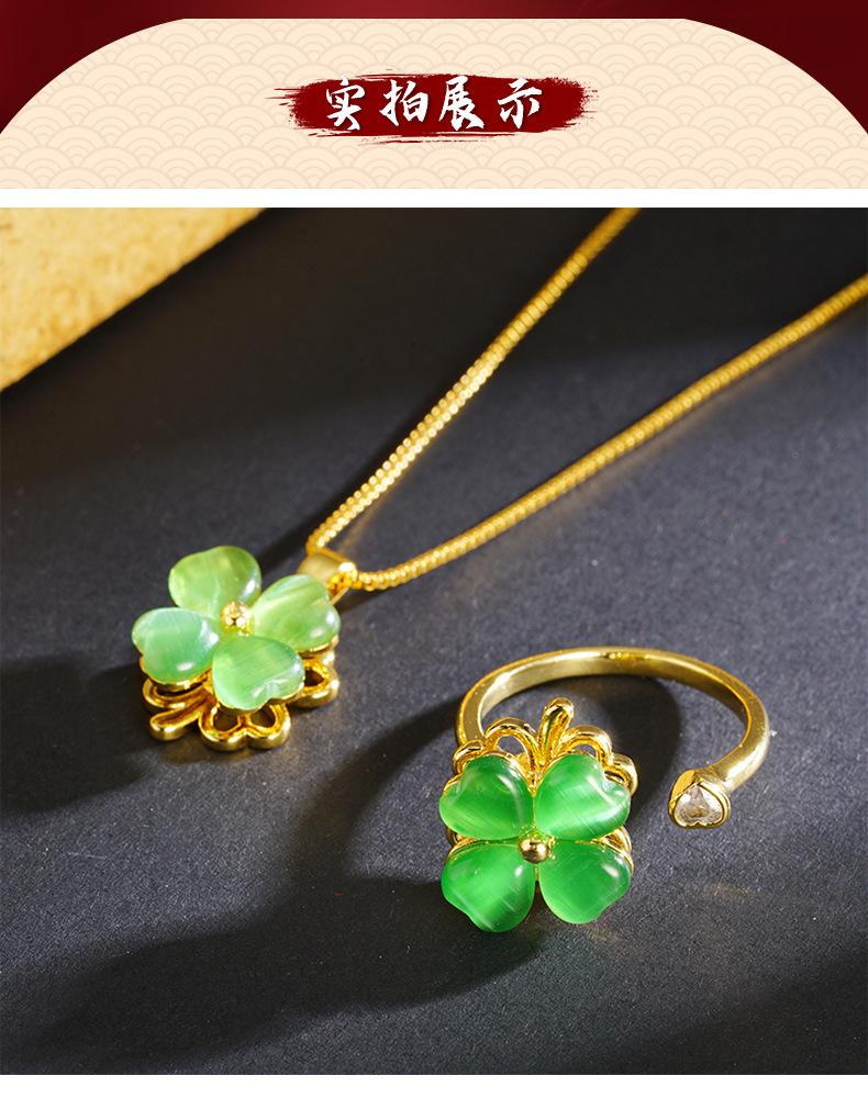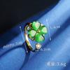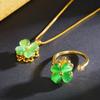 Collar Transfronterizo Chapado en Oro de 18K Estilo Japonés y Coreano Europeo y Americano de Trébol de Cuatro Hojas Venta al por Mayor Joyería de Anillo Abierto Color Esmeralda