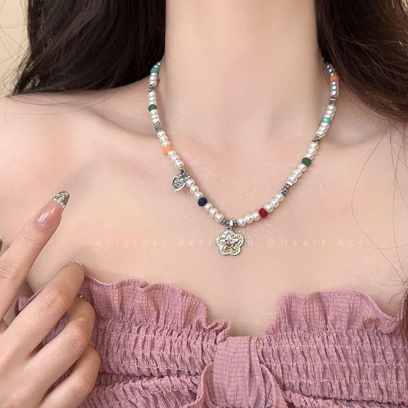 Collar de estrellas con cuentas de colores para mujer, nuevo estilo 2023, cadena de clavícula de perlas ligeras y de lujo, collar con esmalte de gota dulce y fresco, accesorios para mujer