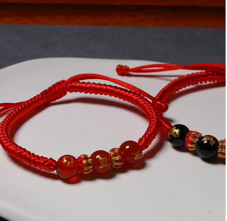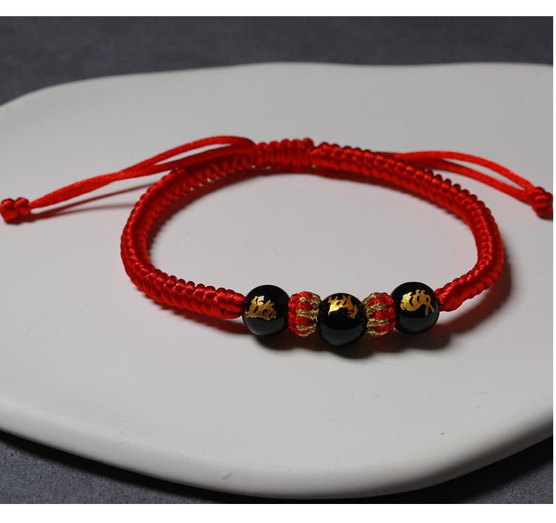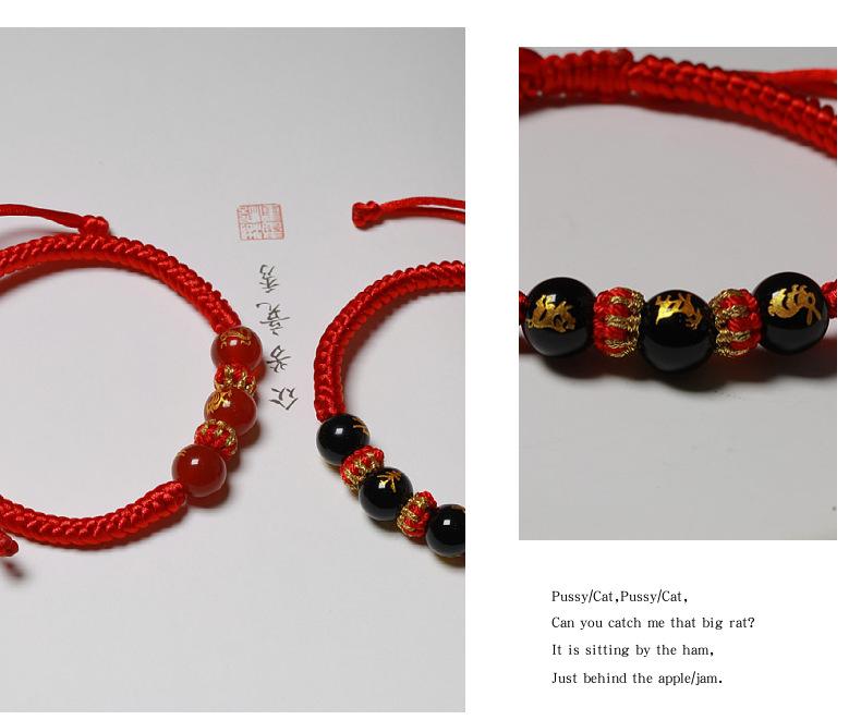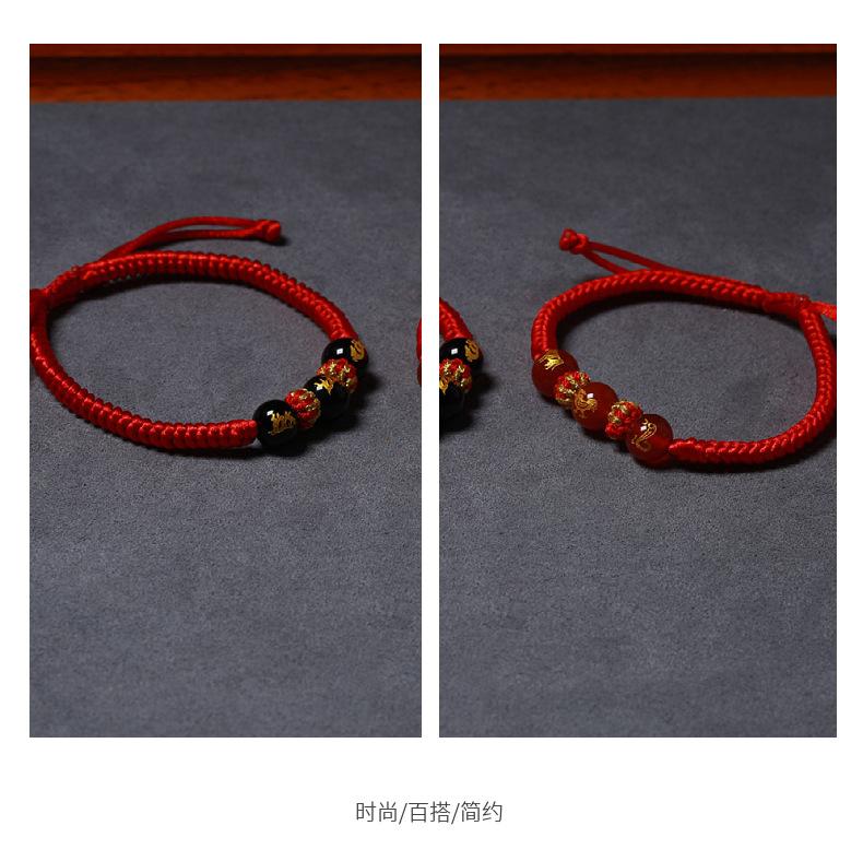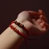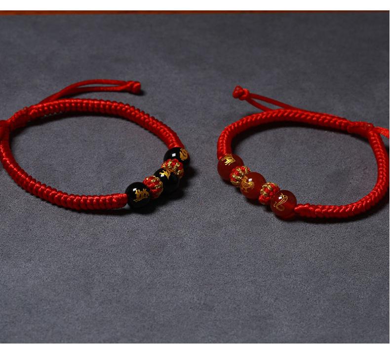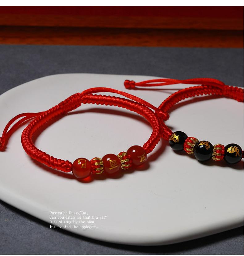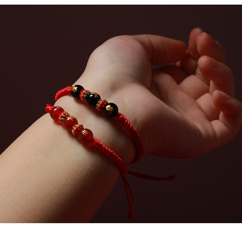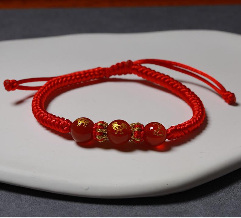 Ágata roja 8mm pulsera de cuerda roja de año de nacimiento para hombre y mujer tejido de cuerda roja tres en uno pulsera zodiacal pareja retro