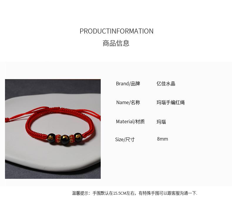 Compra Ágata roja 8mm pulsera de cuerda roja de año de nacimiento para hombre y mujer tejido de cuerda roja tres en uno pulsera zodiacal pareja retro al por mayor en Joom.pro